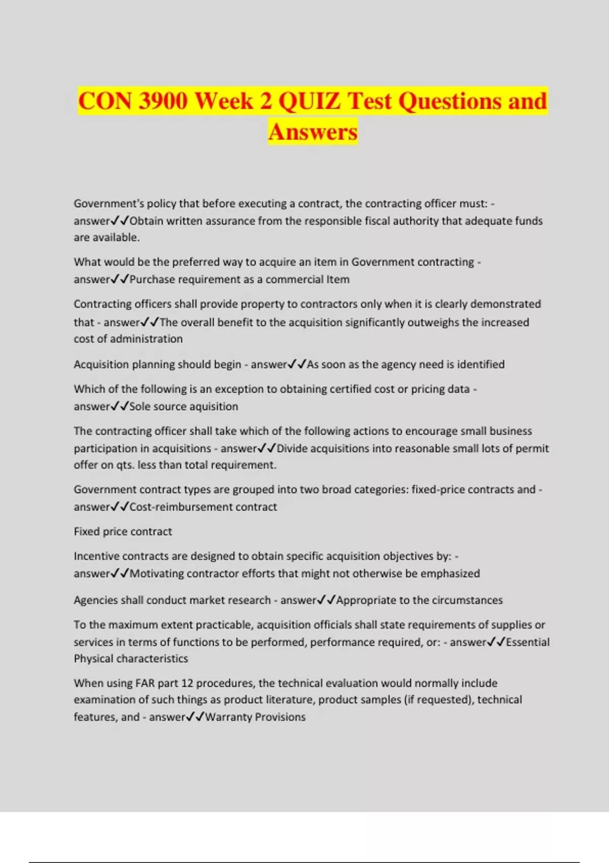 CON 3900 Week 2 QUIZ Test Questions and Answers