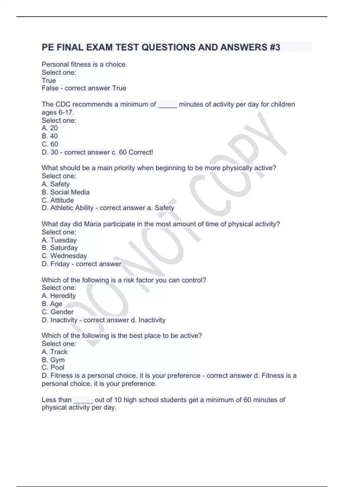 PE FINAL EXAM TEST QUESTIONS AND ANSWERS #3