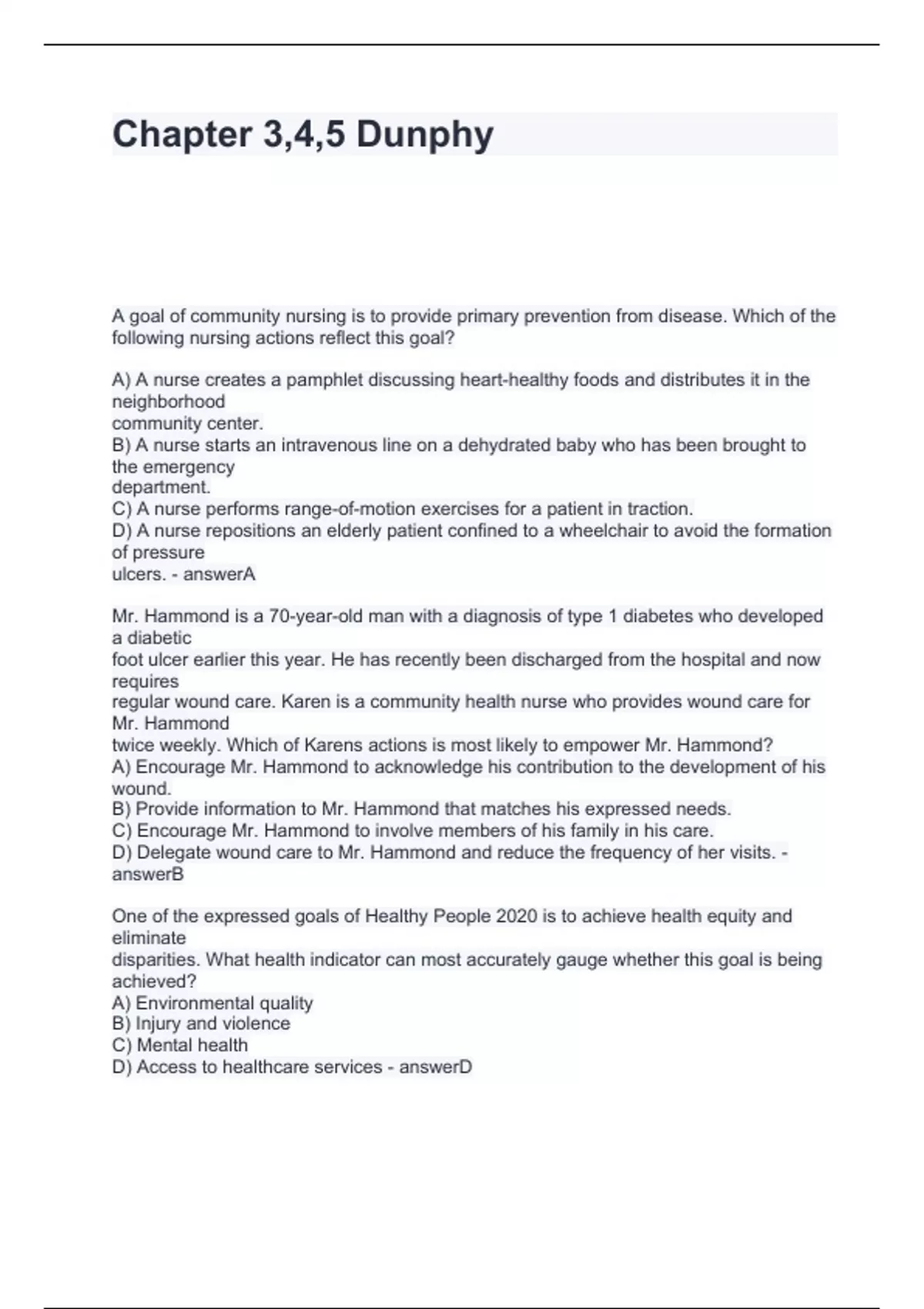Chapter 3,4,5 Dunphy Questions and Answers Graded A
