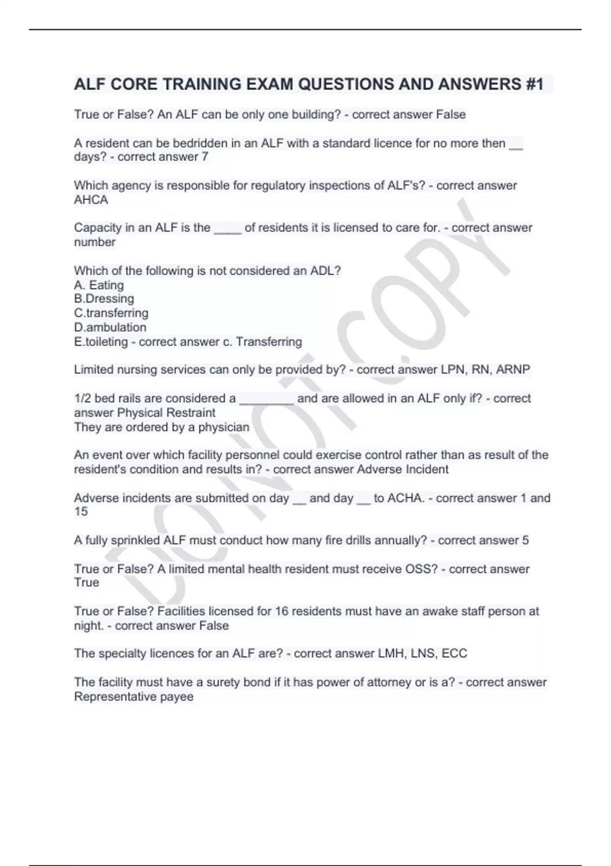 ALF CORE TRAINING EXAM QUESTIONS AND ANSWERS #1