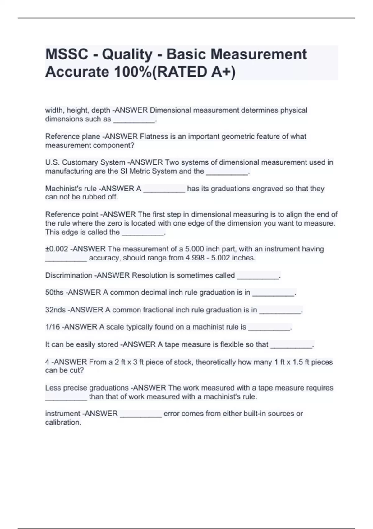 MSSC - Quality - Basic Measurement Accurate 100%(RATED A+)