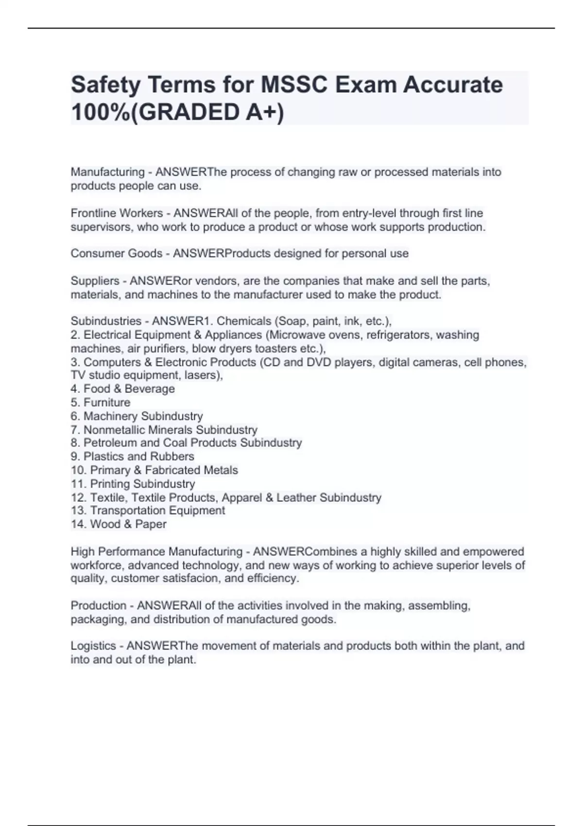 Safety Terms for MSSC Exam Accurate 100%(GRADED A+)