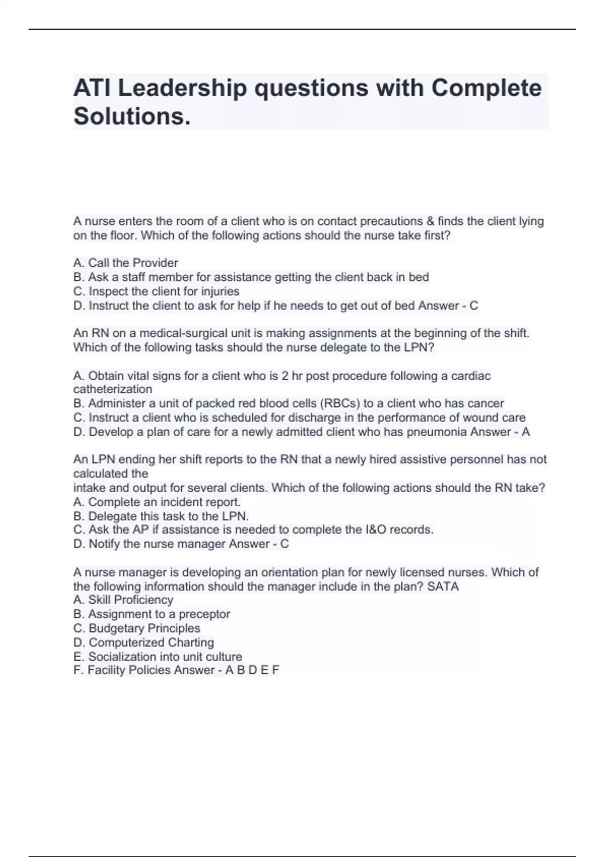 ATI Leadership questions with Complete Solutions