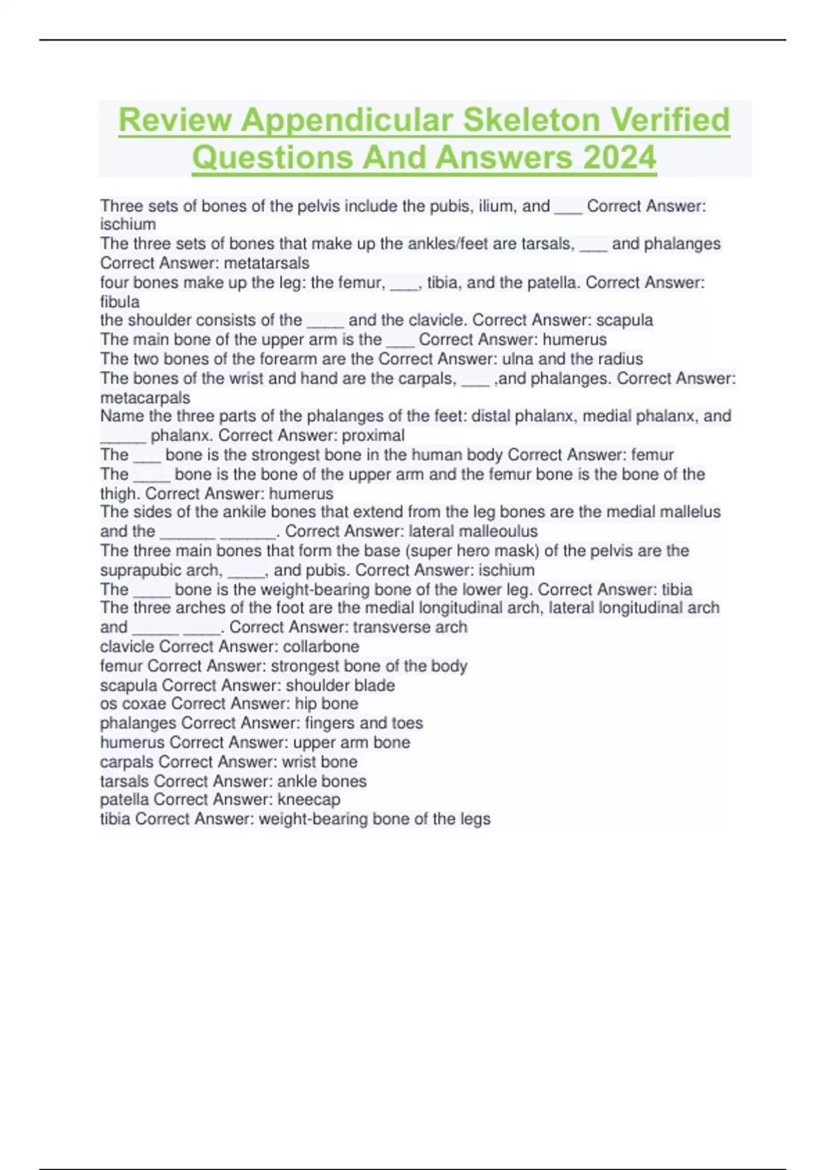 Review Appendicular Skeleton Verified Questions And Answers 2024 Review Appendicular Skeleton Verified Questions And Answers 2024