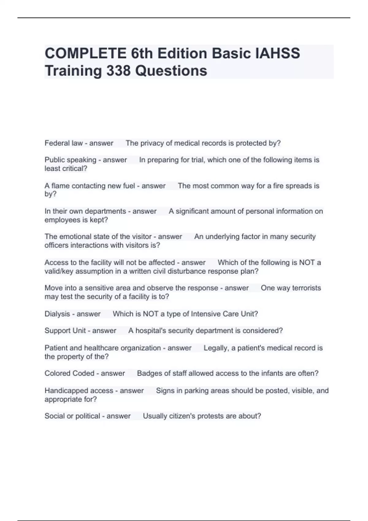 COMPLETE 6th Edition Basic IAHSS Training 338 Questions