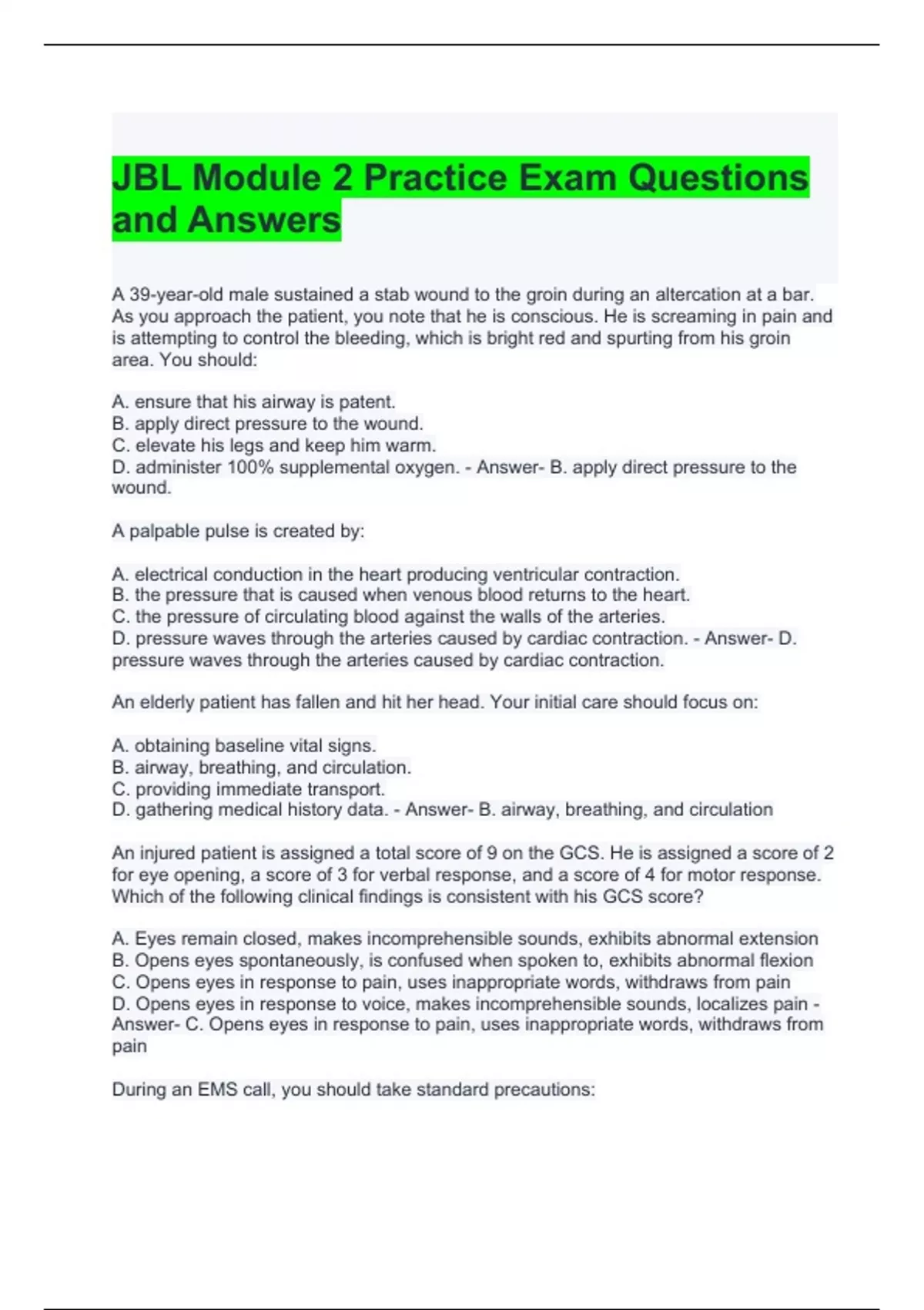 jbl module 2 practice exam questions and answers