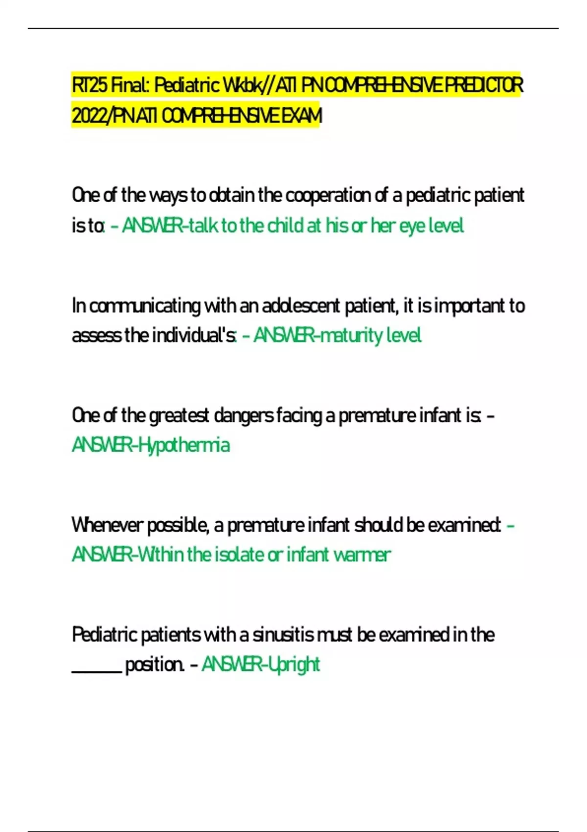 RT25 Final: Pediatric Wkbk// ATI PN COMPREHENSIVE PREDICTOR 2022/PN ATI COMPREHENSIVE EXA