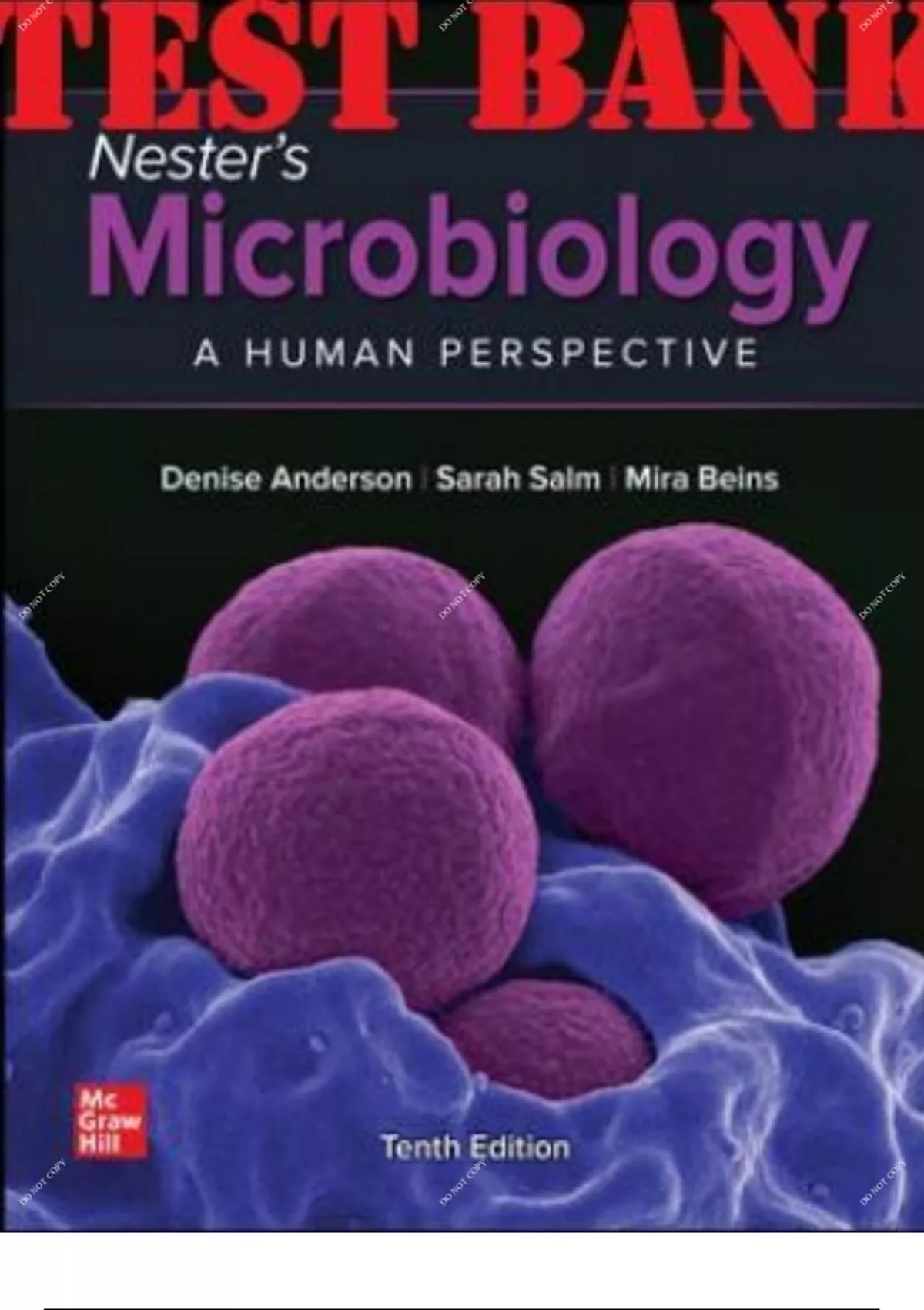 Test Bank for Nester's Microbiology: A Human Perspective 10e 10th Edition... ISBN-13: 5505 Full Chapters test bank included Chapter 1: Humans and the Microbial World Chapter 2: The Molecules of Life Chapter 3: Cells and Metho...