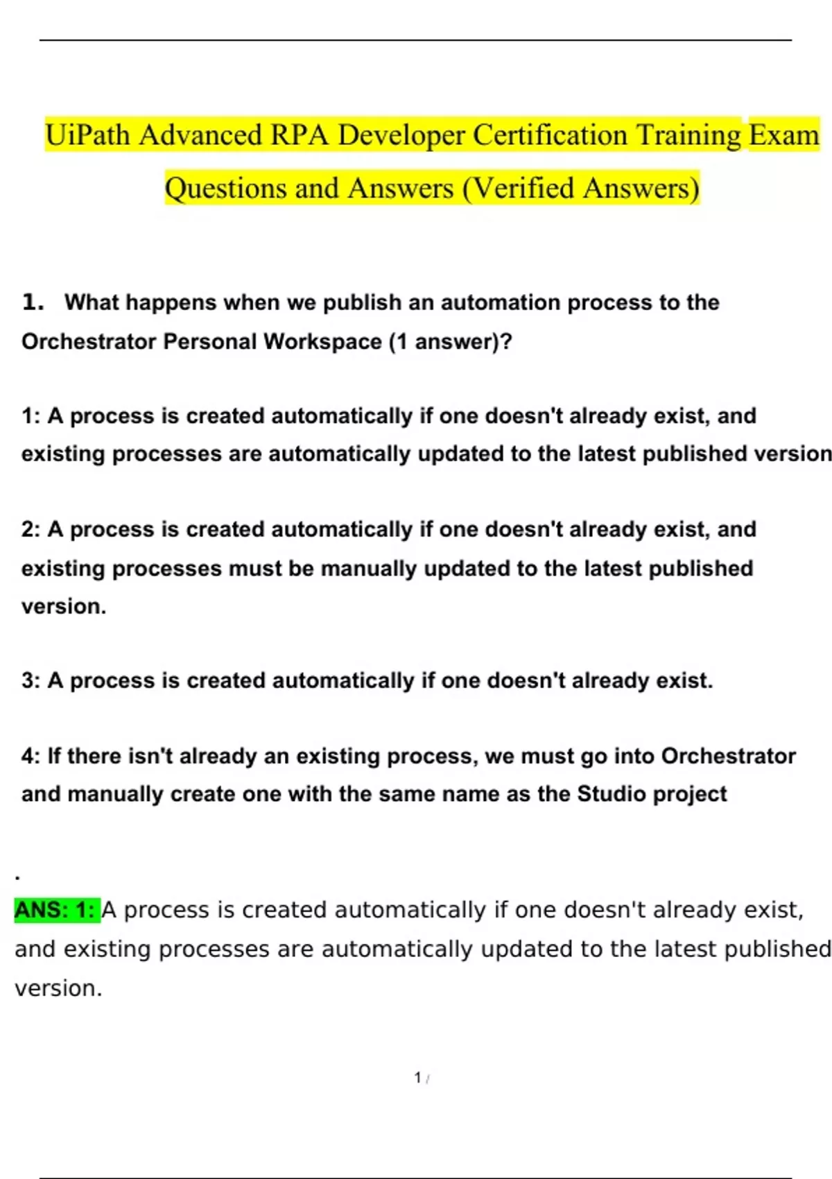 UiPath Advanced RPA Developer Certification Training Exam Questions and Answers (2024 / 2025) (Verified Answers)