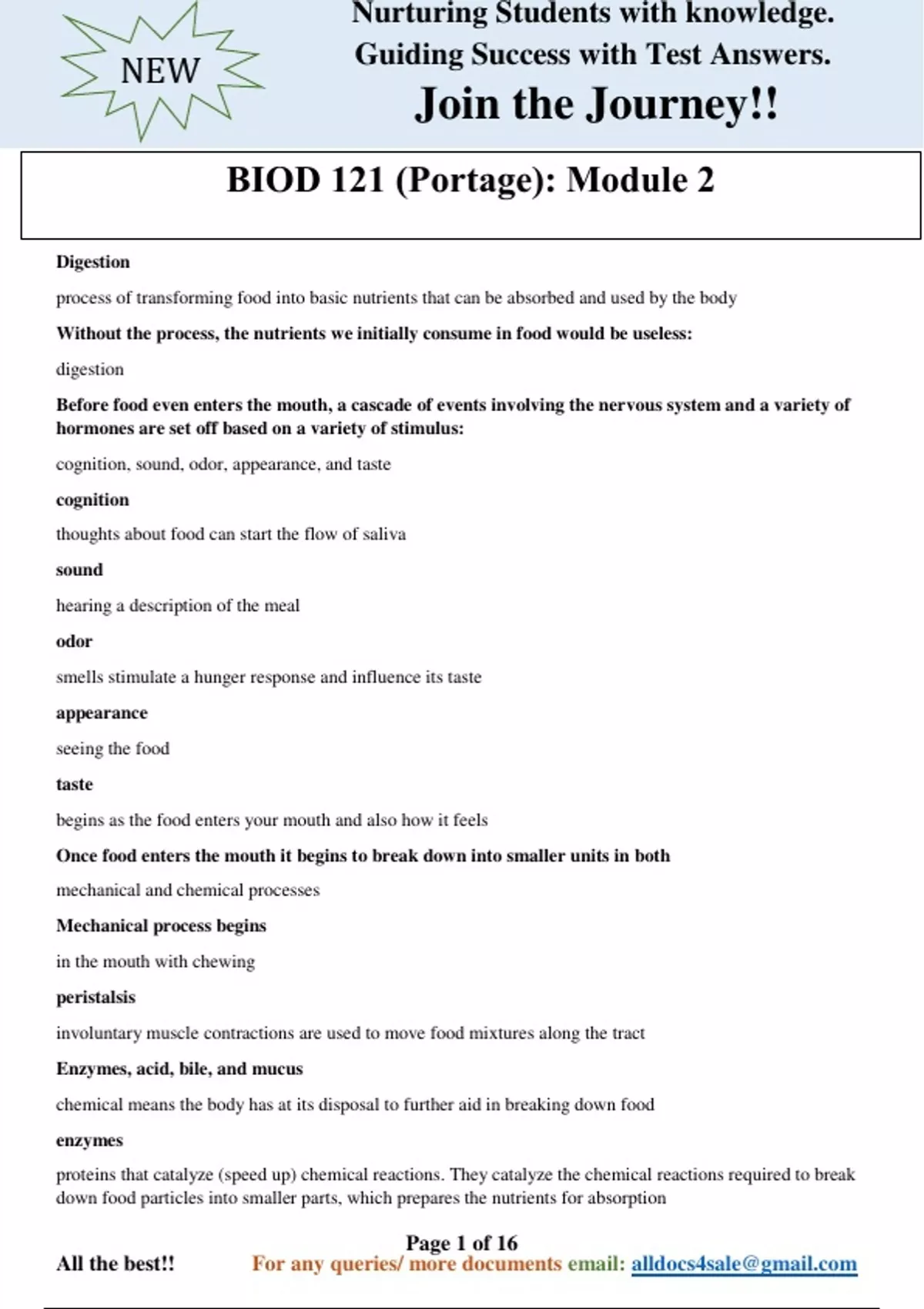 BIOD 121 (Portage): Module 2 Questions with Correct Answers