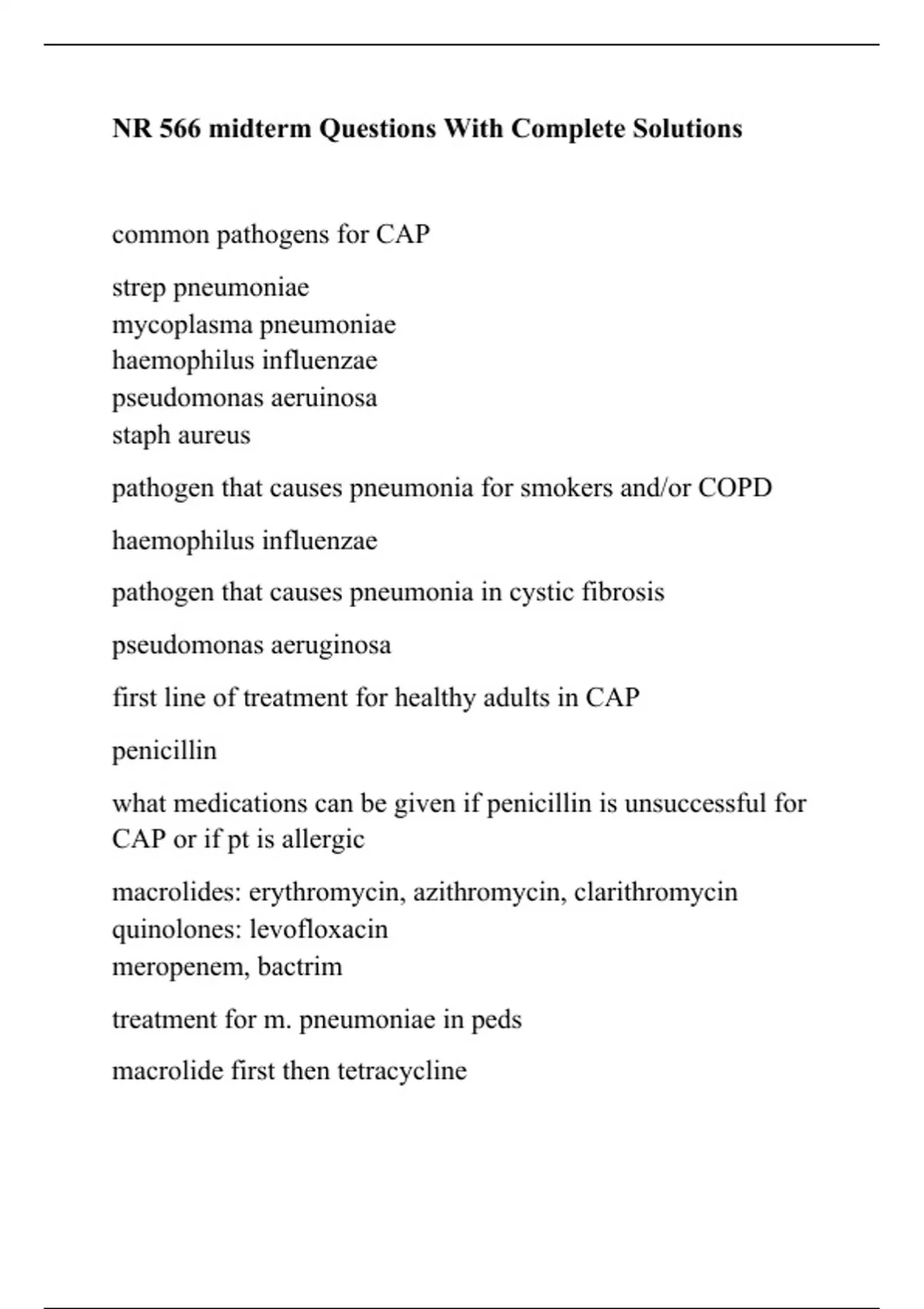Chamberlain School Of Nursing NR 566 midterm Questions With Complete Solutions