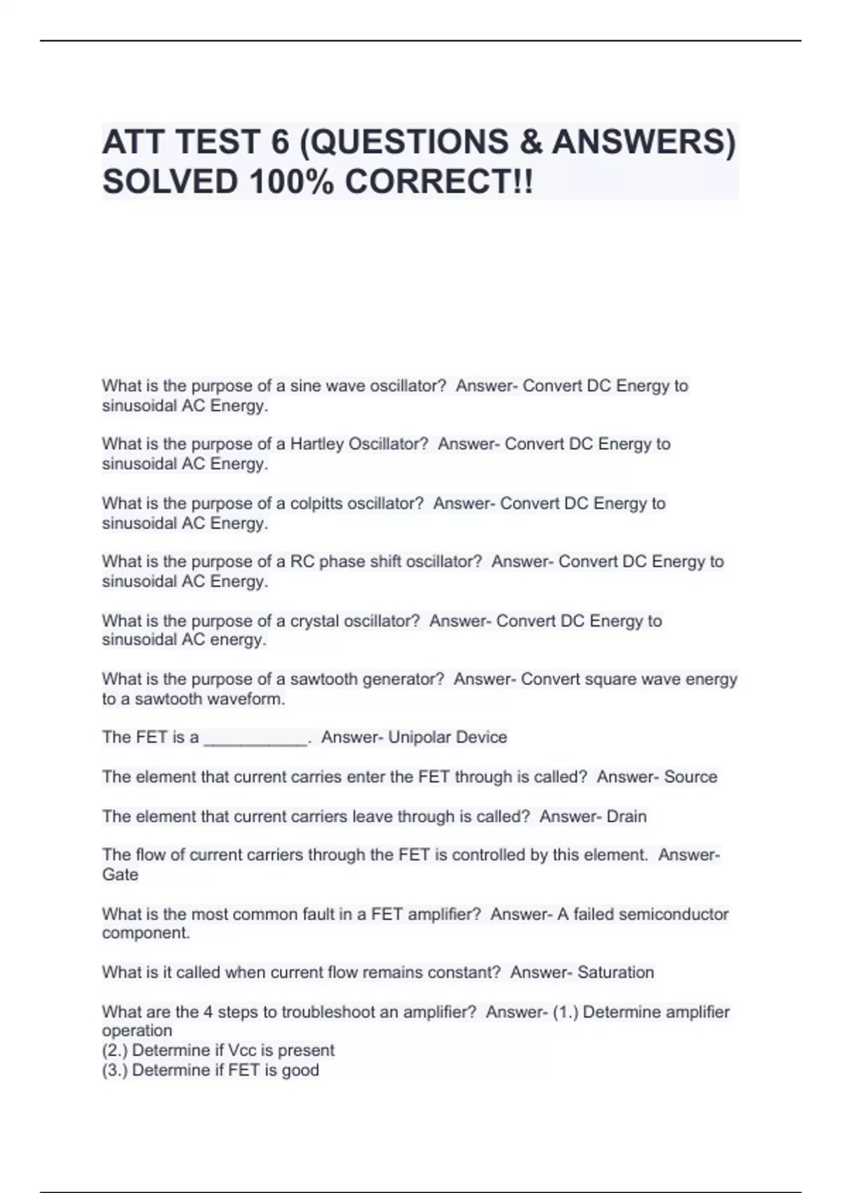 att test 6 questions answers solved 100 corre