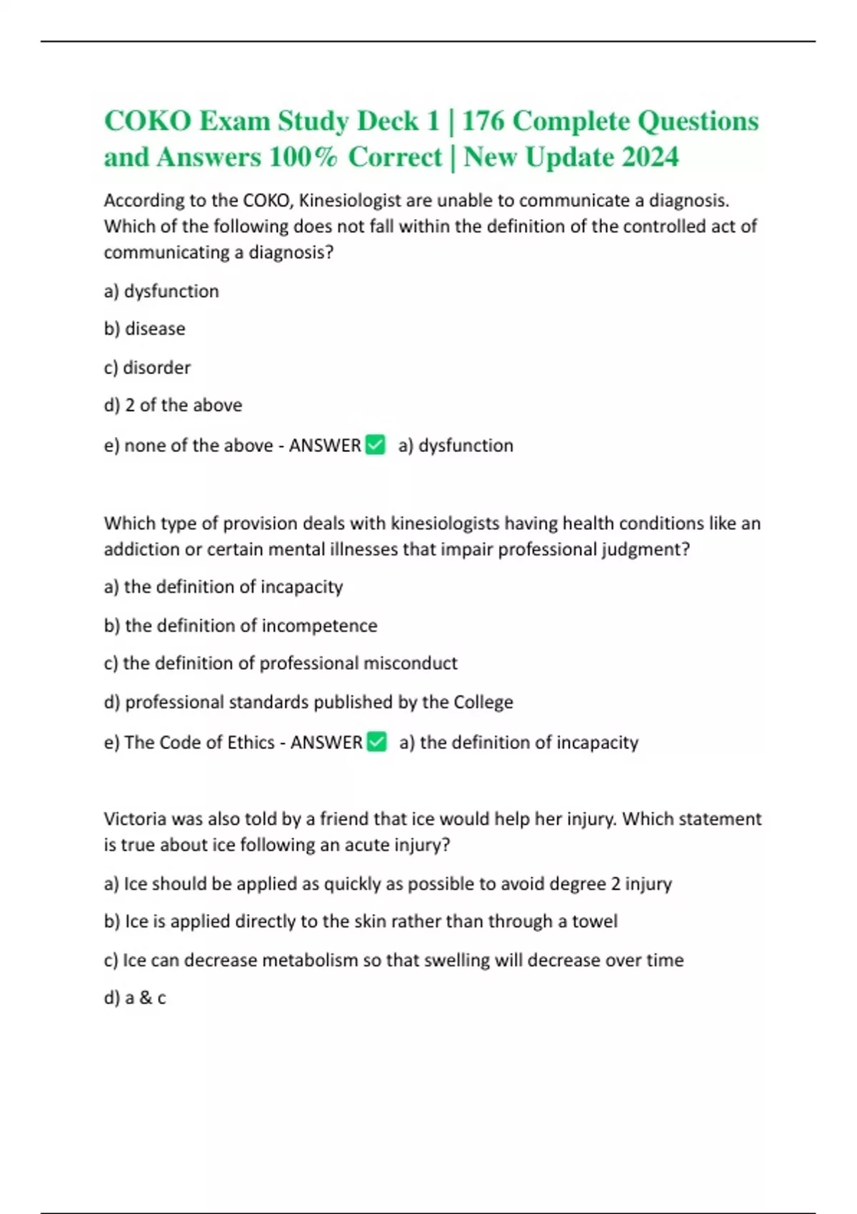 COKO Exam Study Deck 1 | 176 Complete Questions and Answers 100% Correct | New Update 2024