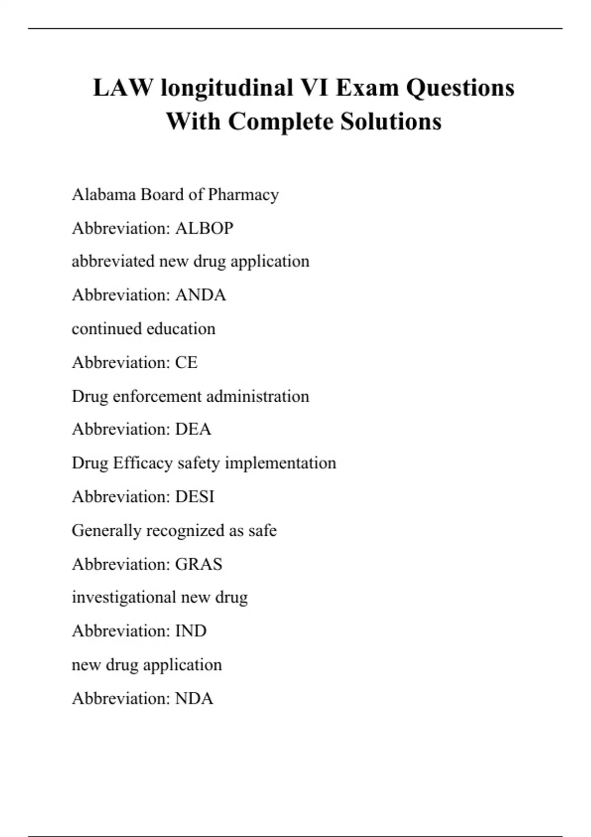 LAW longitudinal VI Exam Questions With Complete Solutions