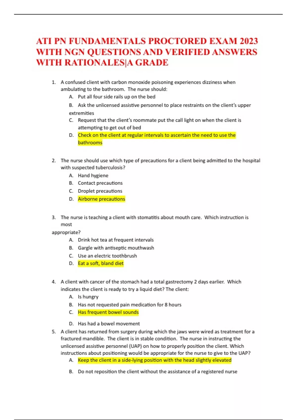 ATI PN FUNDAMENTALS PROCTORED EXAM 2023 WITH NGN QUESTIONS AND VERIFIED ANSWERS WITH RATIONALES|A GRADE