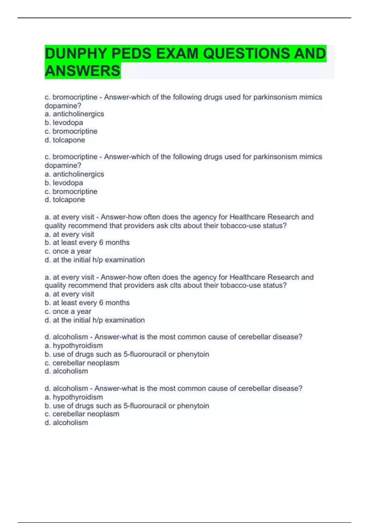 DUNPHY PEDS EXAM QUESTIONS AND ANSWERS