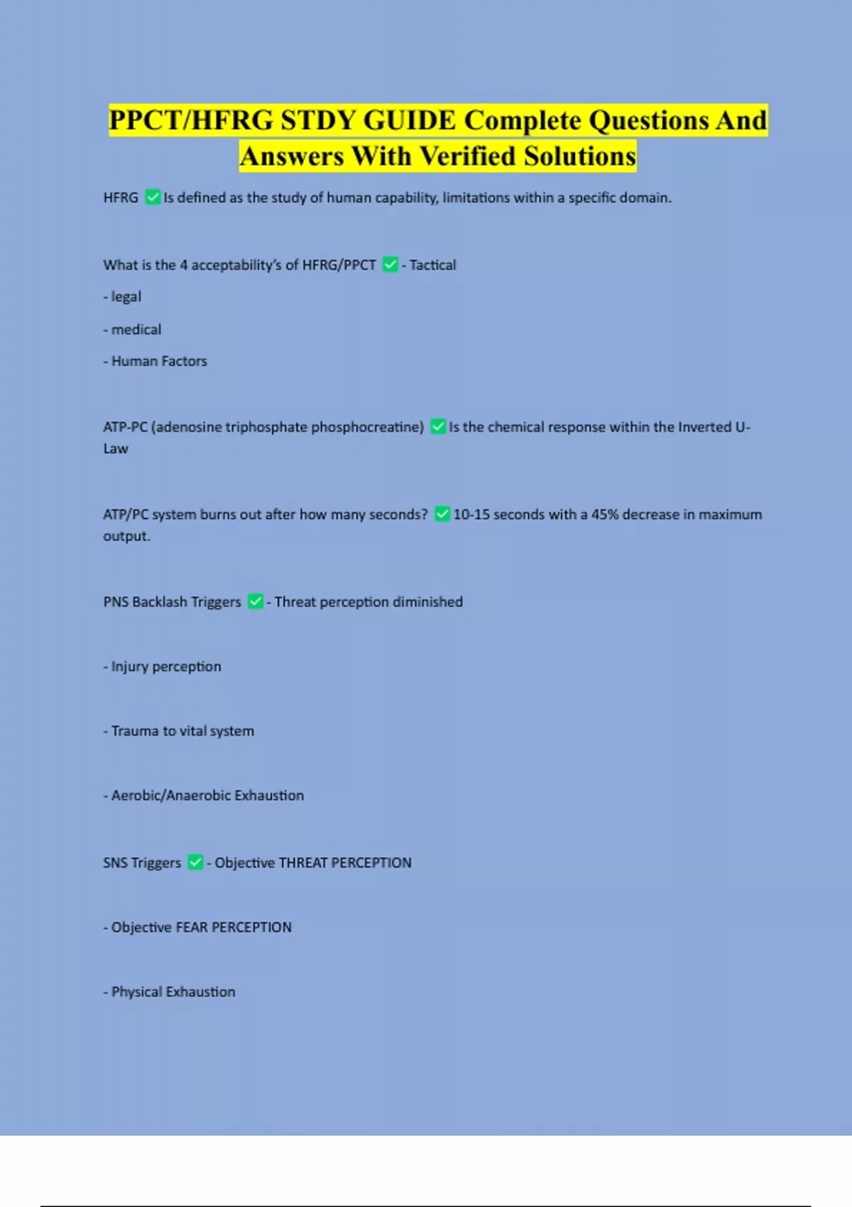 PPCT/HFRG STUDY GUIDE Complete Questions And Answers With Verified Solutions PPCT/HFRG STUDY GUIDE Complete Questions And Answers With Verified Solutions