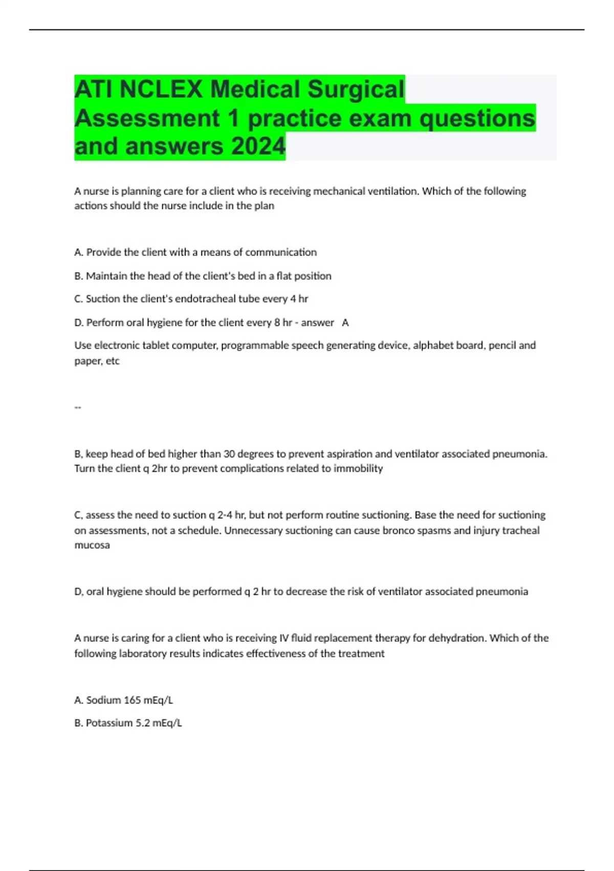 ATI NCLEX Medical Surgical Assessment 1 practice exam questions and answers 2024