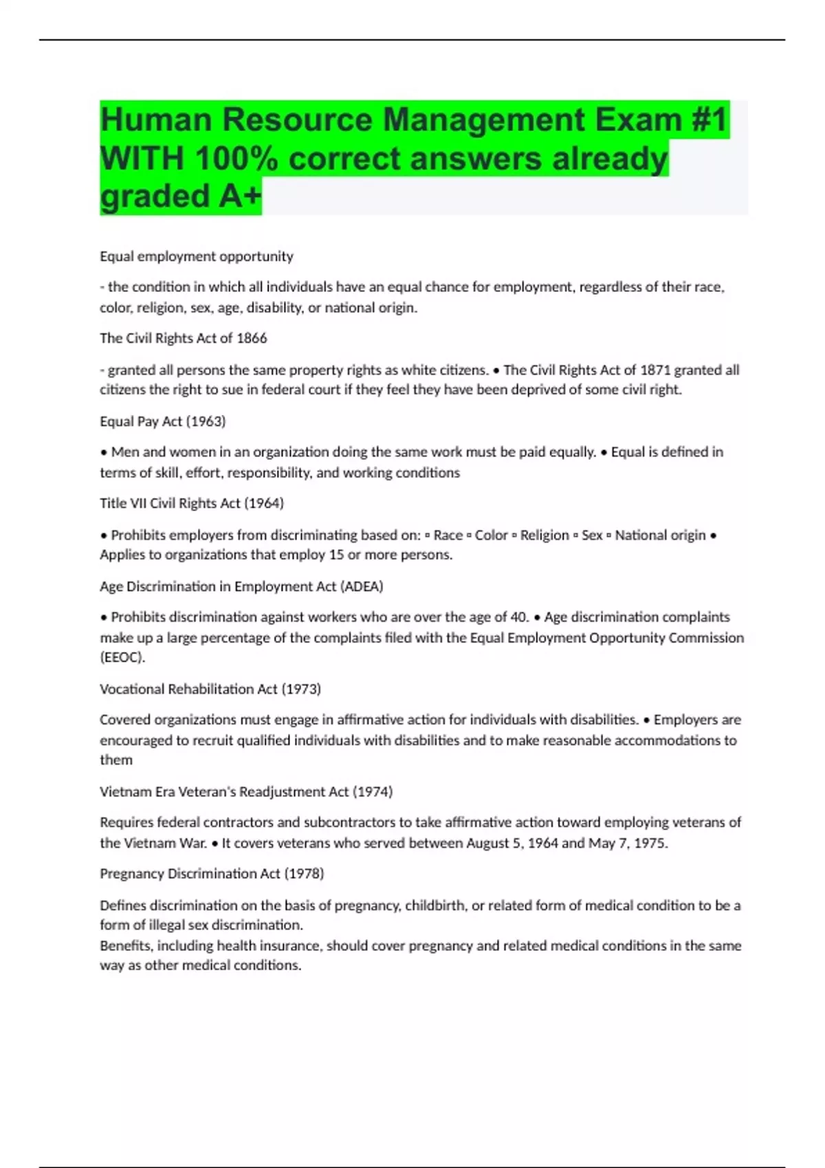 HUMAN RESOURCE MANAGEMENT(HR) BUNDLED EXAMS 2024/2025|100% ACCURACY