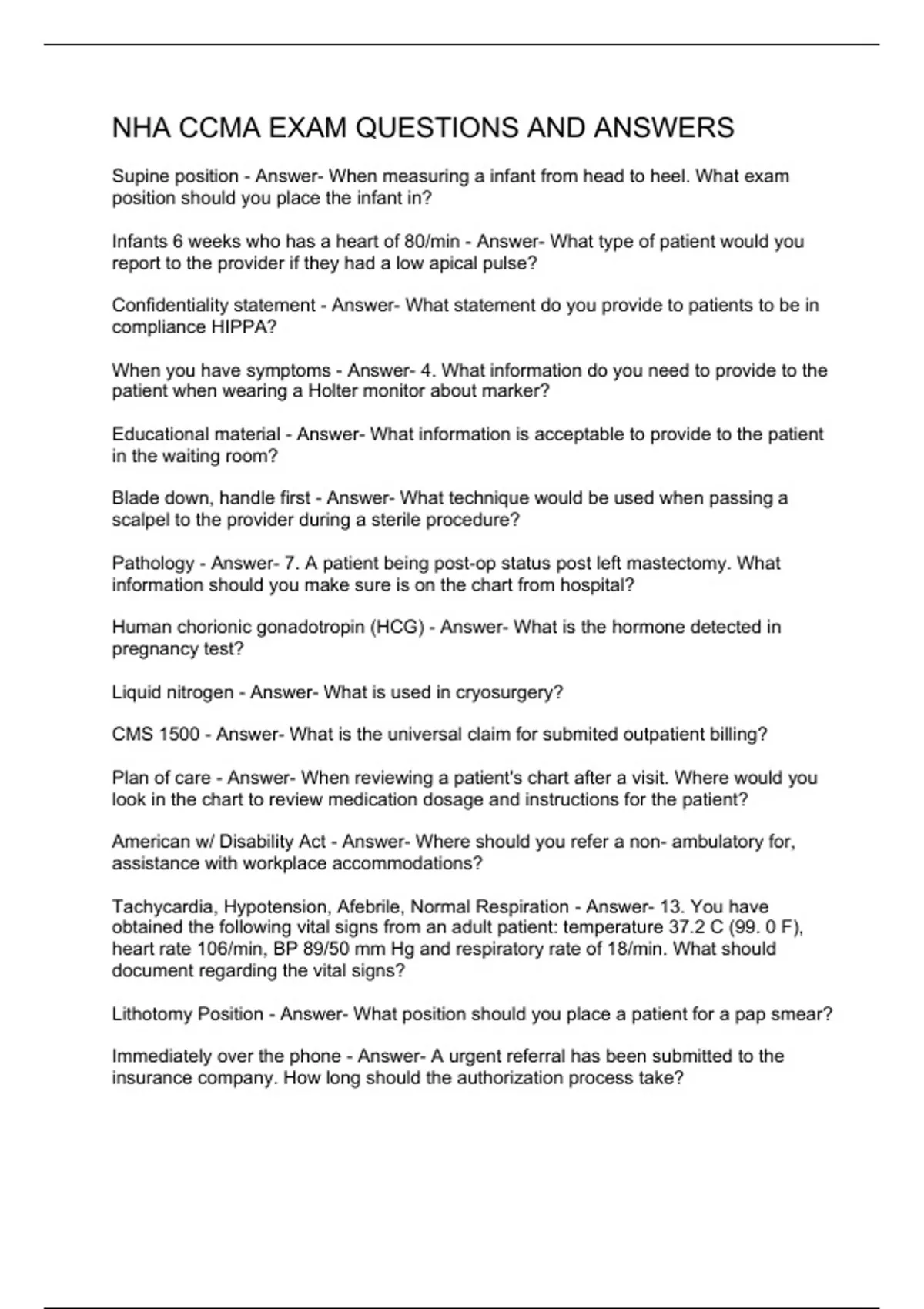 NHA CCMA EXAM QUESTIONS AND ANSWERS