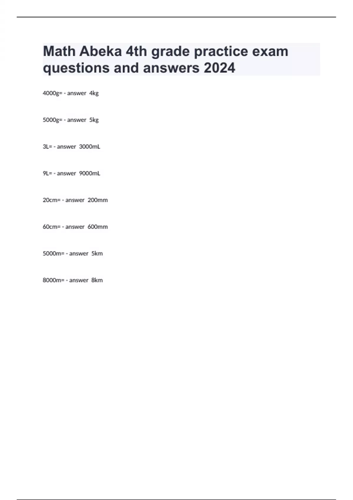 Math Abeka 4th grade practice exam questions and answers 2024.