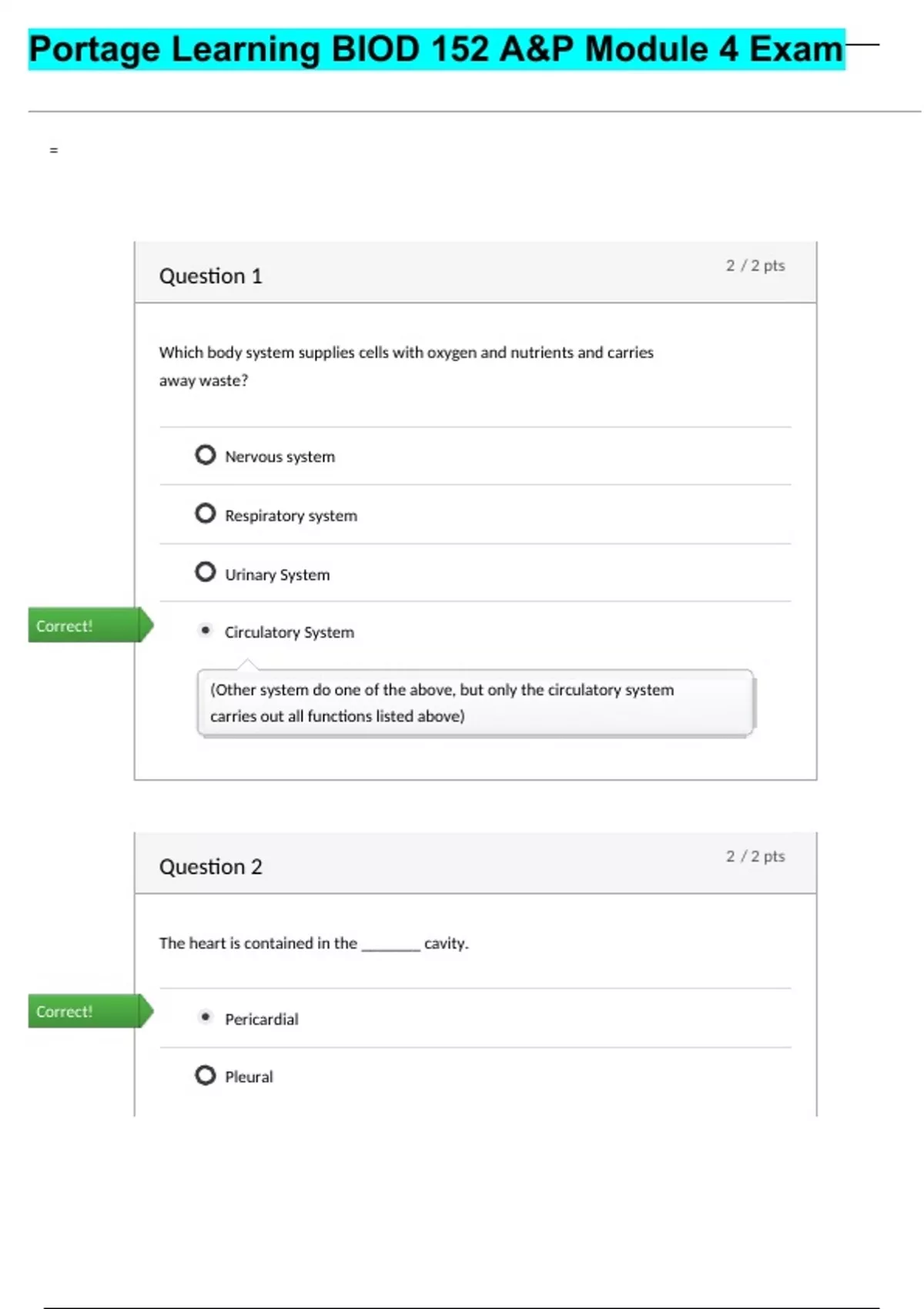 Portage Learning BIOD 152 A&P Module 4 Exam 2024 Guide