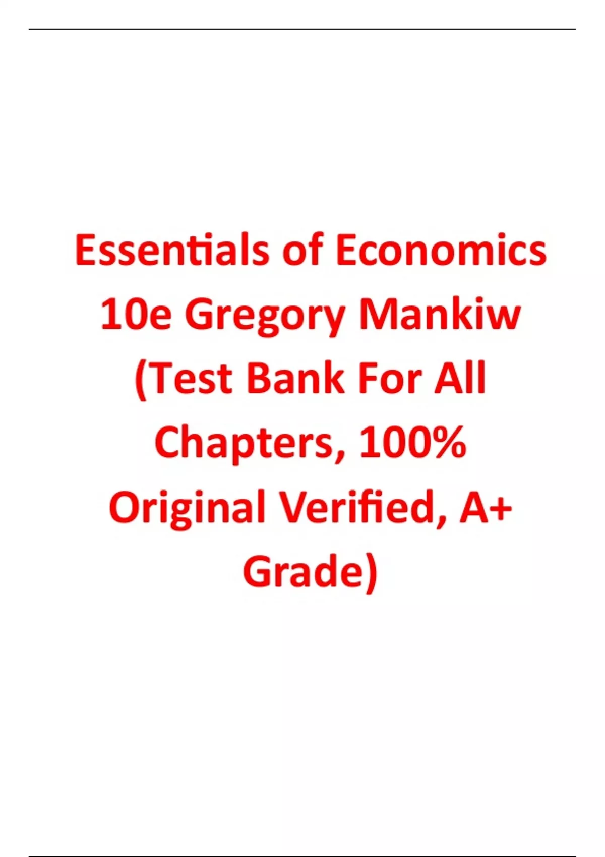 Test Bank for Essentials of Economics 10th Edition By Gregory Mankiw (All Chapters, 100% Original Verified, A+ Grade) Test Bank for Essentials of Economics 10th Edition By Gregory Mankiw