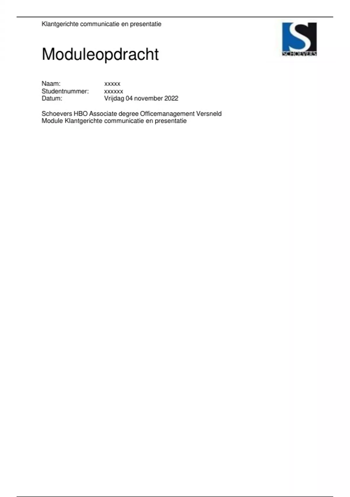 Studentnummer: xxxxxx