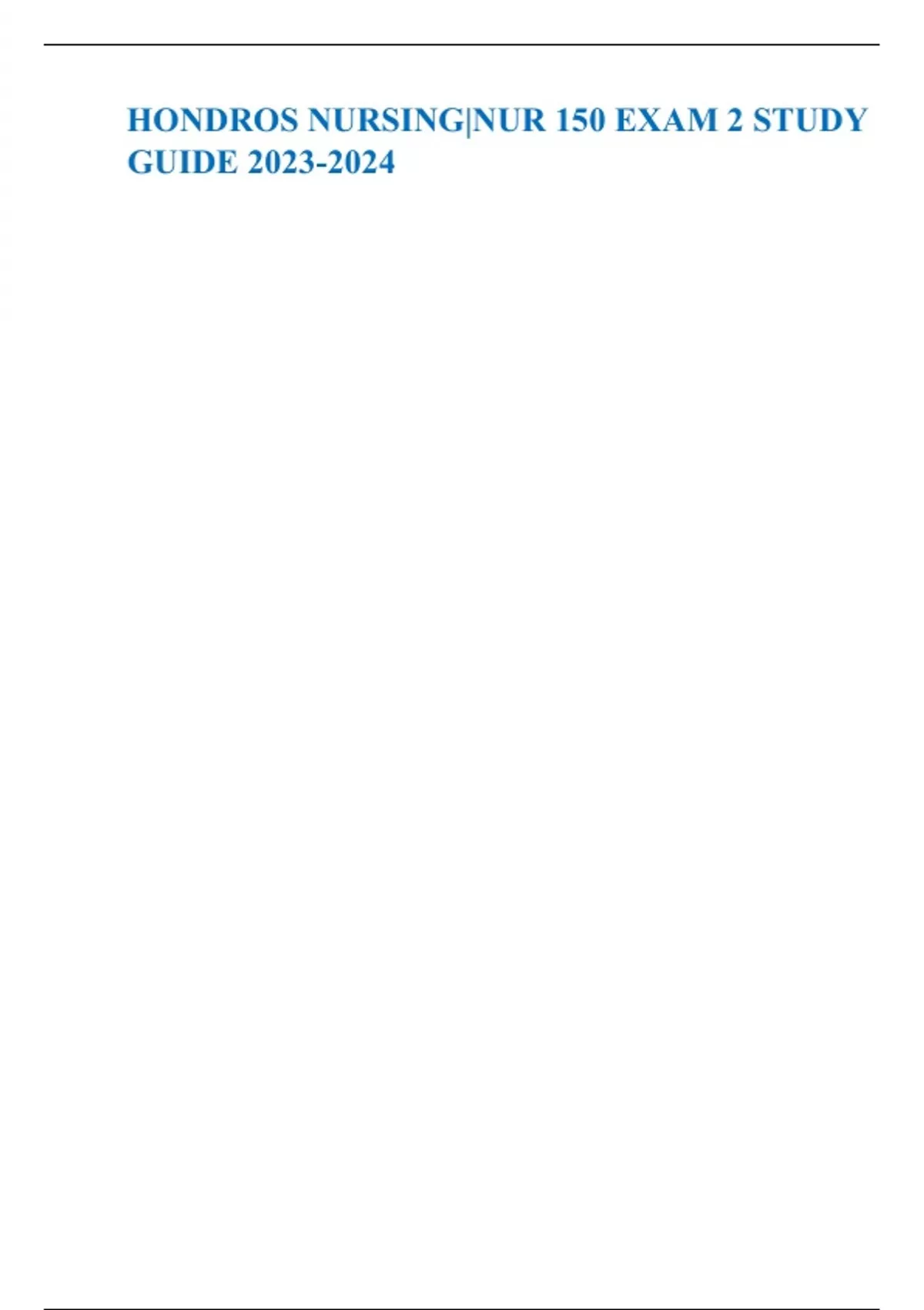 HONDROS NURSING|NUR 150 EXAM 2 STUDY GUIDE