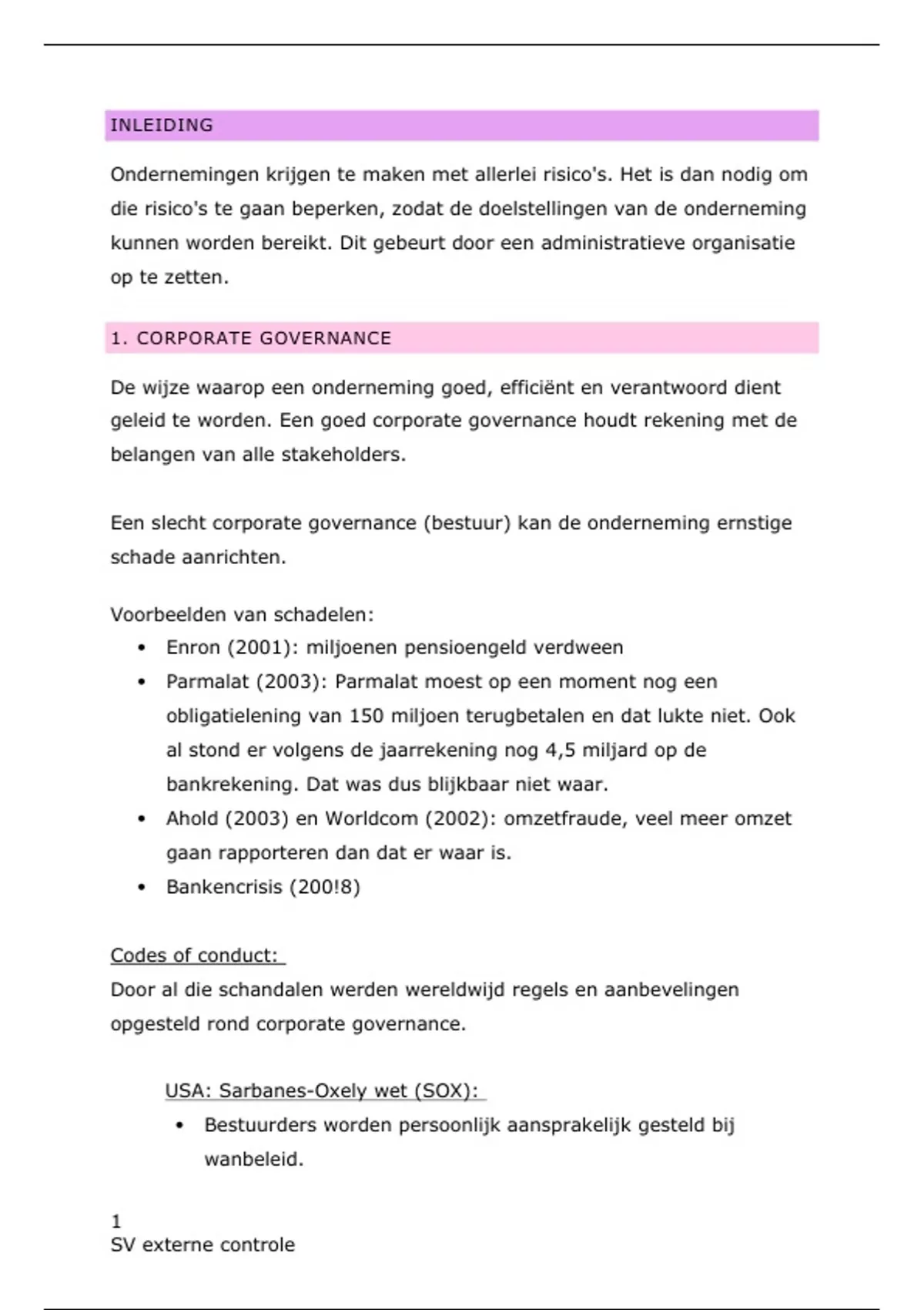 H1: WAT IS INTERNE CONTROLE?