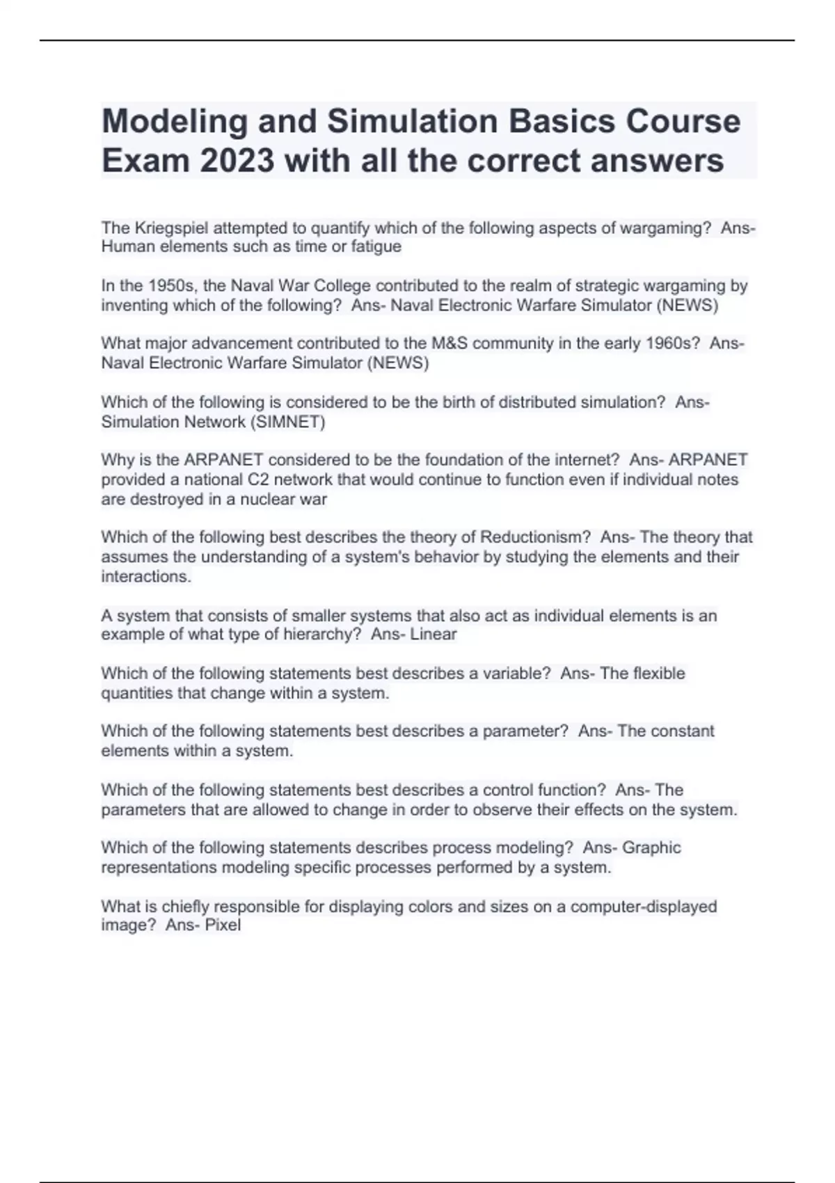 Modeling and Simulation Basics Course Exam 2024 with all the correct answers