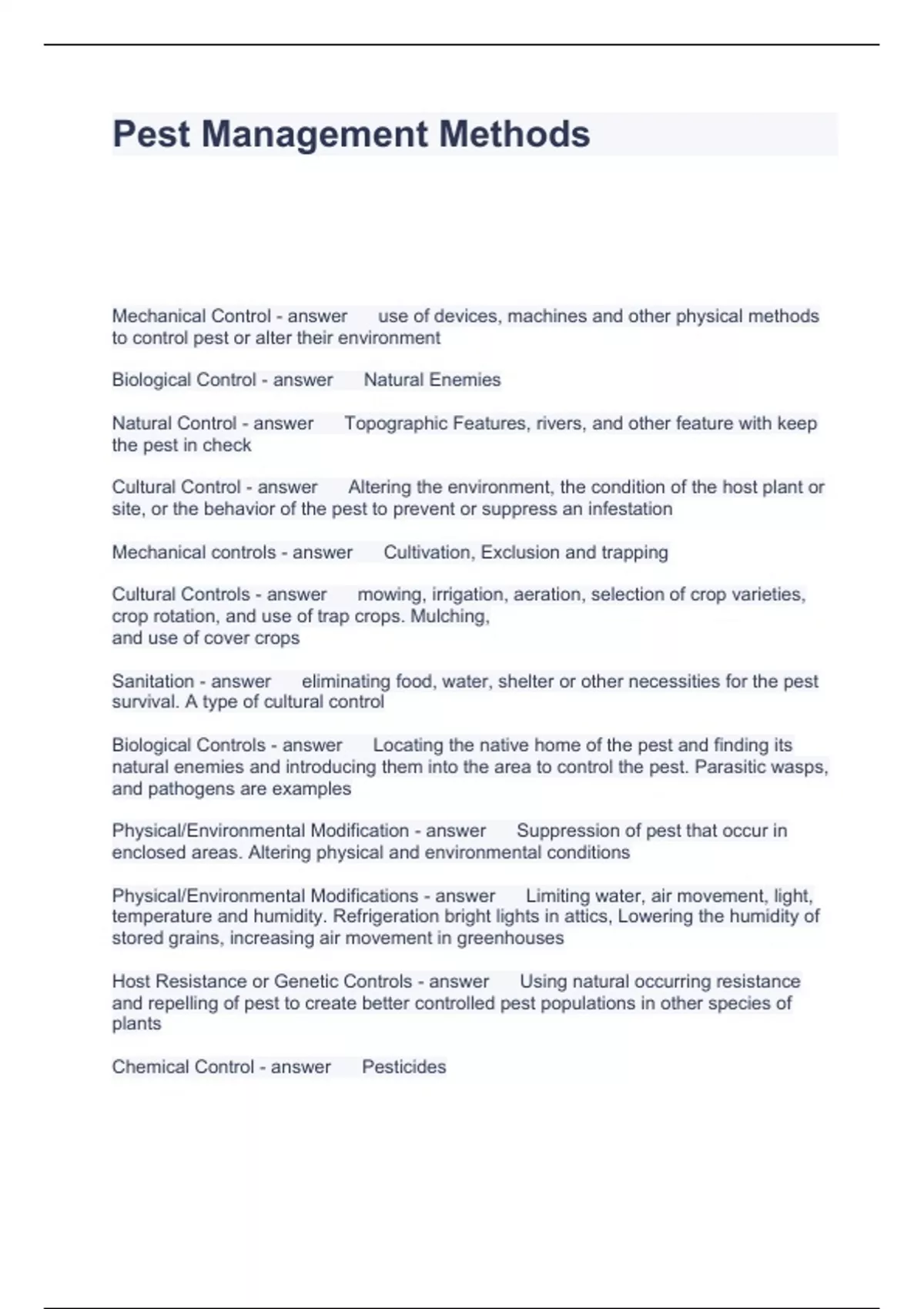 Pest Management Methods Questions and Answers 100% correct