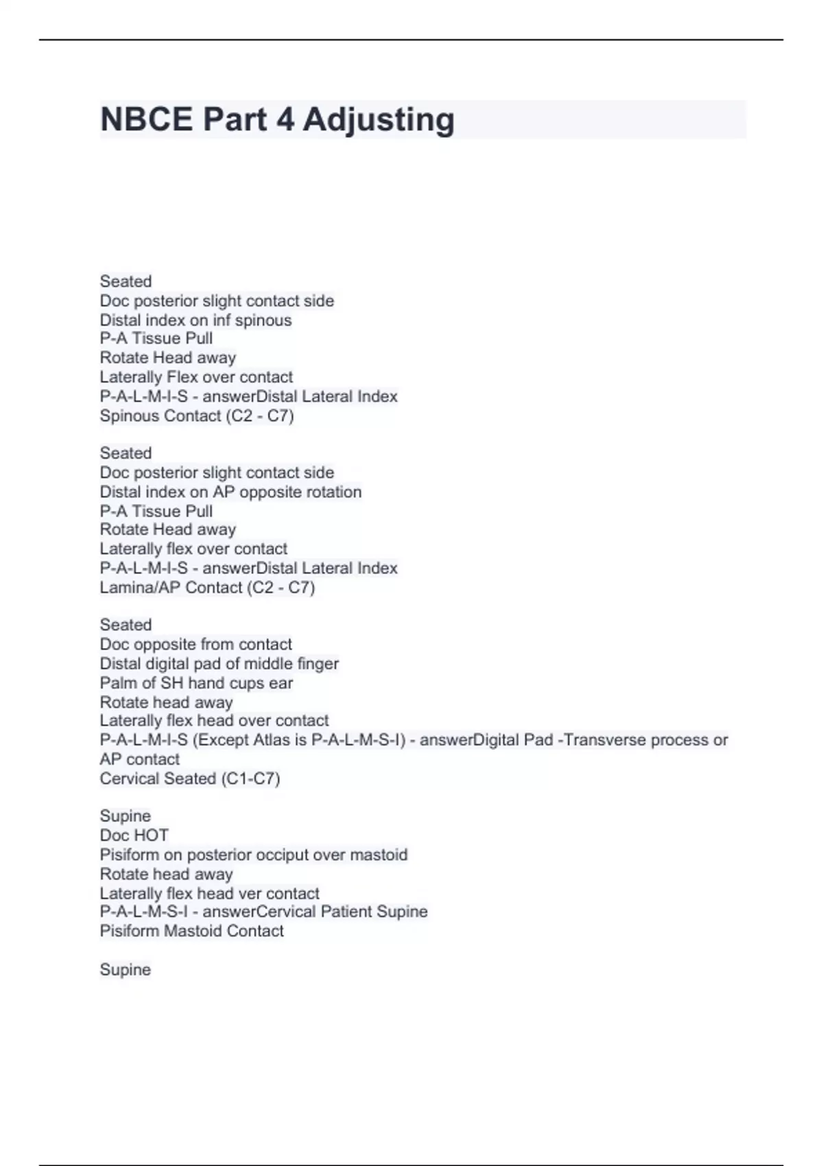 NBCE Part 4 Adjusting Questions and Answers 2024