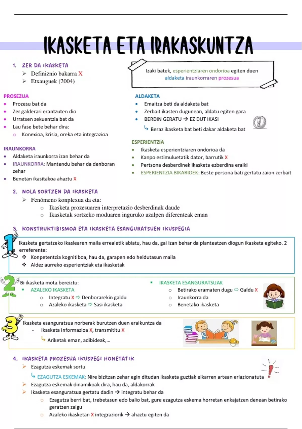 • IRAUNKORRA: Mantendu behar da denboran • Pertsona desberdinek ikasketa ezberdina eraiki