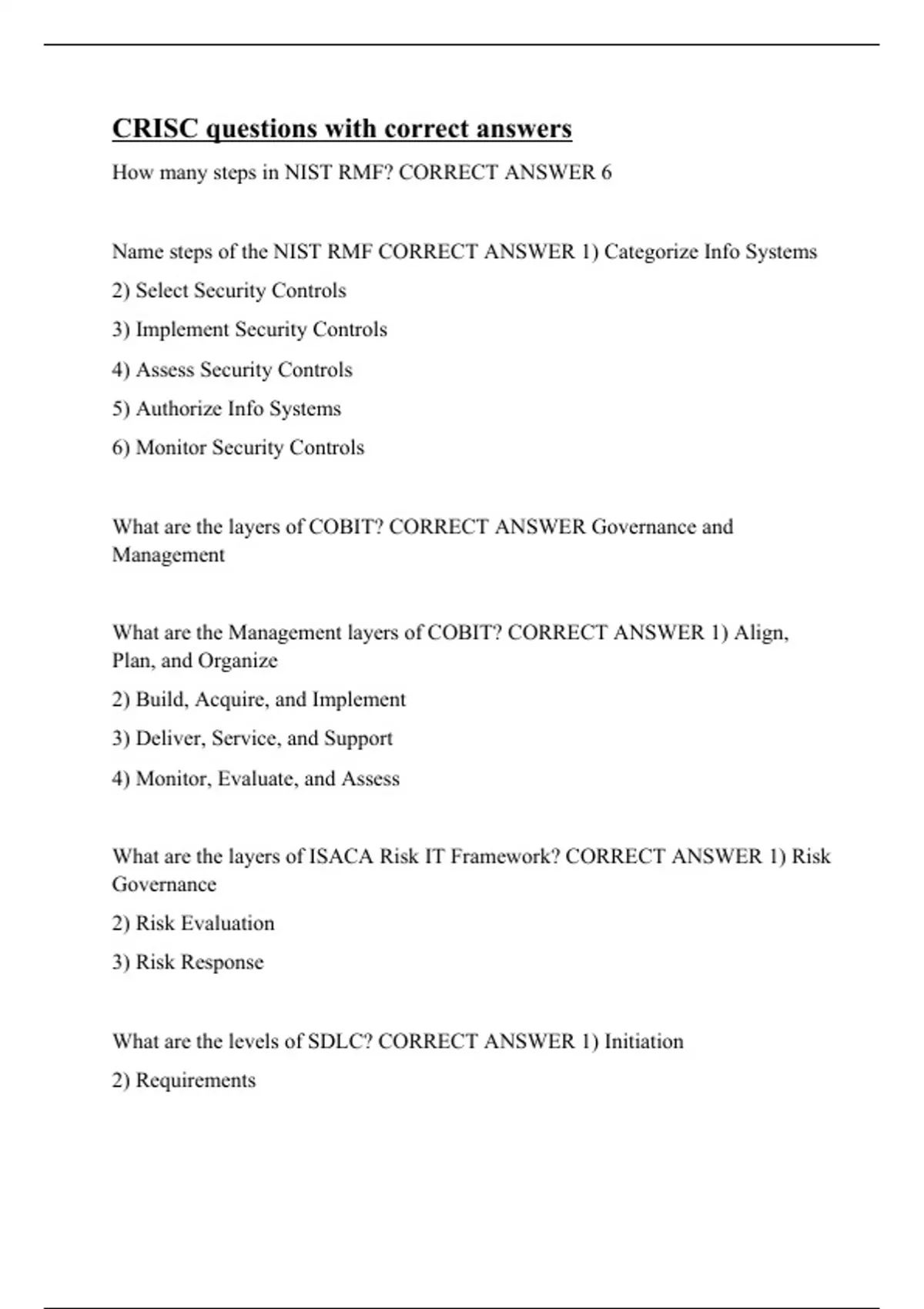 crisc questions with correct answers