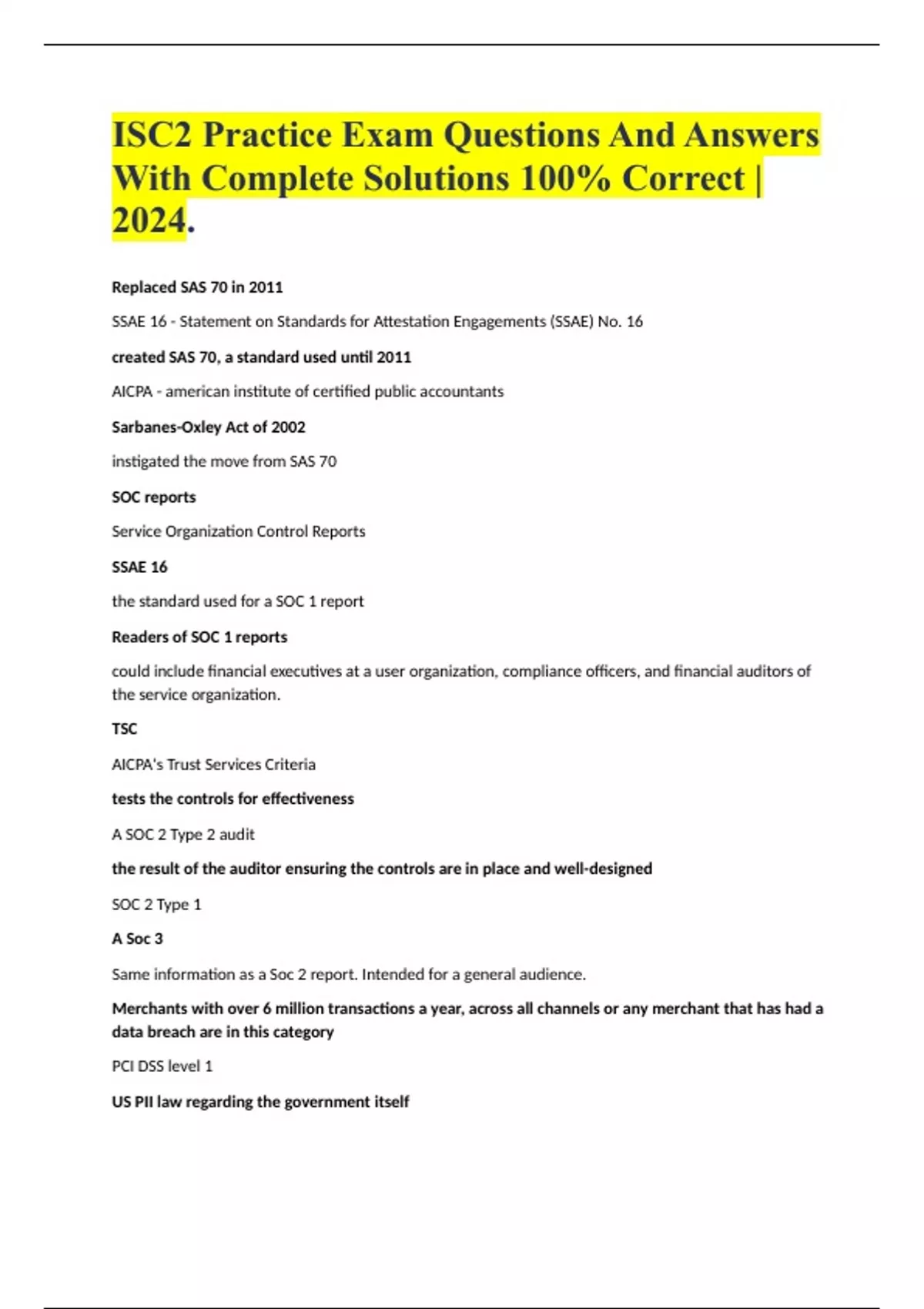 ISC2 Practice Exam Questions And Answers With Complete Solutions 100% Correct | 2024.