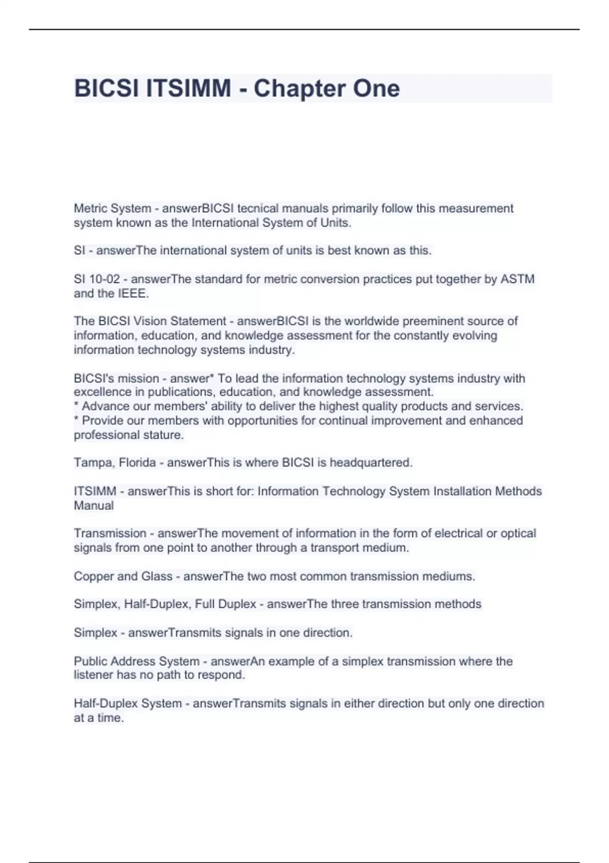 BICSI ITSIMM - Chapter One Questions with correct Answers 2024