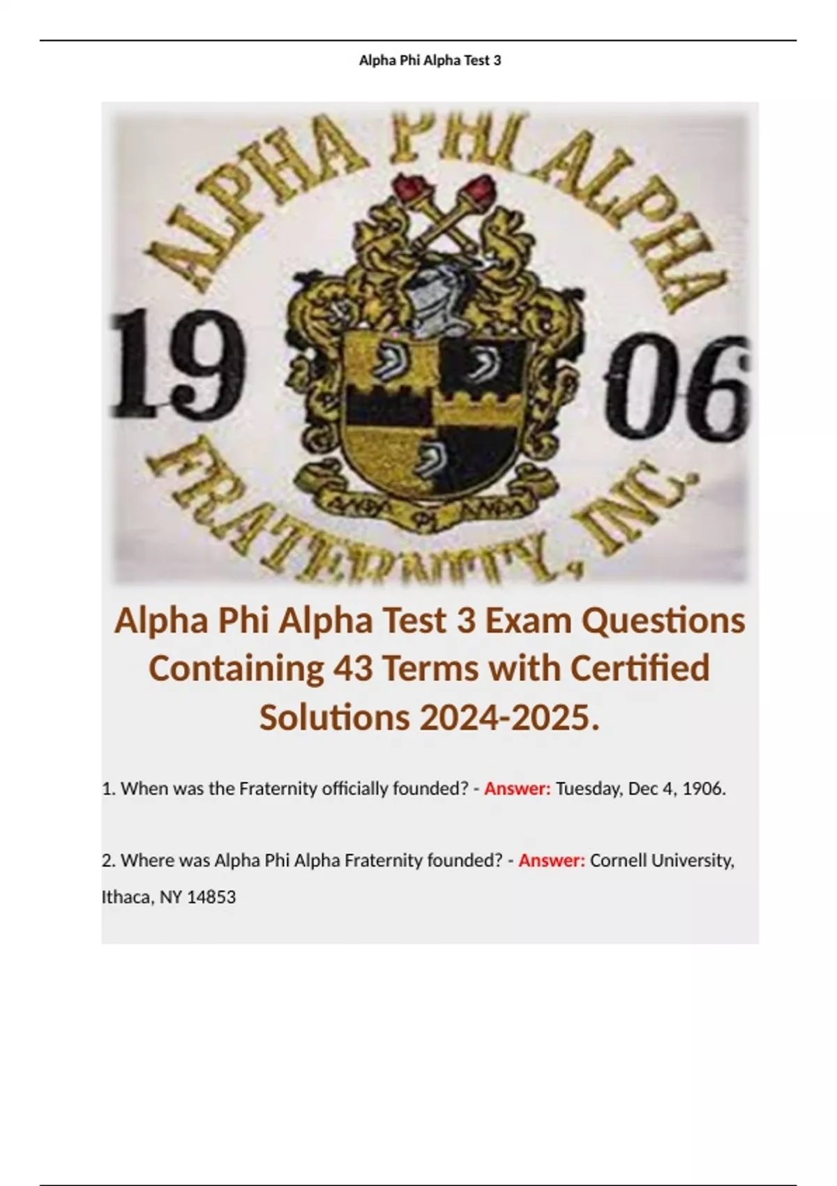 Alpha Phi Alpha Test 3 Exam Questions Containing 43 Terms with Certified Solutions .