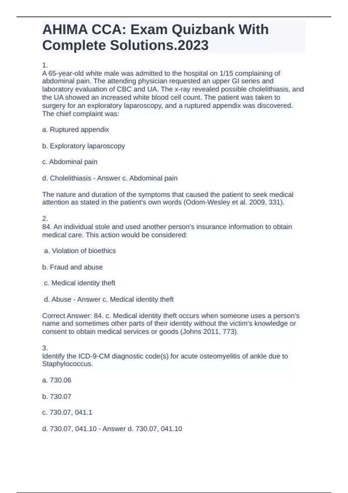 A 65-year-old white male was admitted to the hospital on 1/15 complaining of abdominal pain. The attending physician requested an upper GI series and laboratory evaluation of CBC and UA. The x-ray revealed possible cholelithiasis, and the UA showed an increased white blood cell count. The patient was taken to surgery for an exploratory laparoscopy, and a ruptured appendix was discovered.