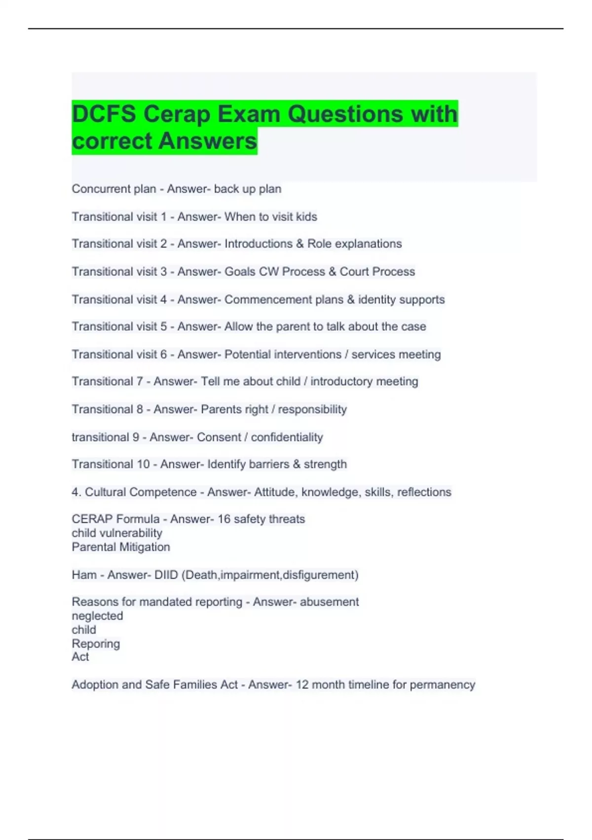 DCFS Cerap Exam Questions with correct Answers