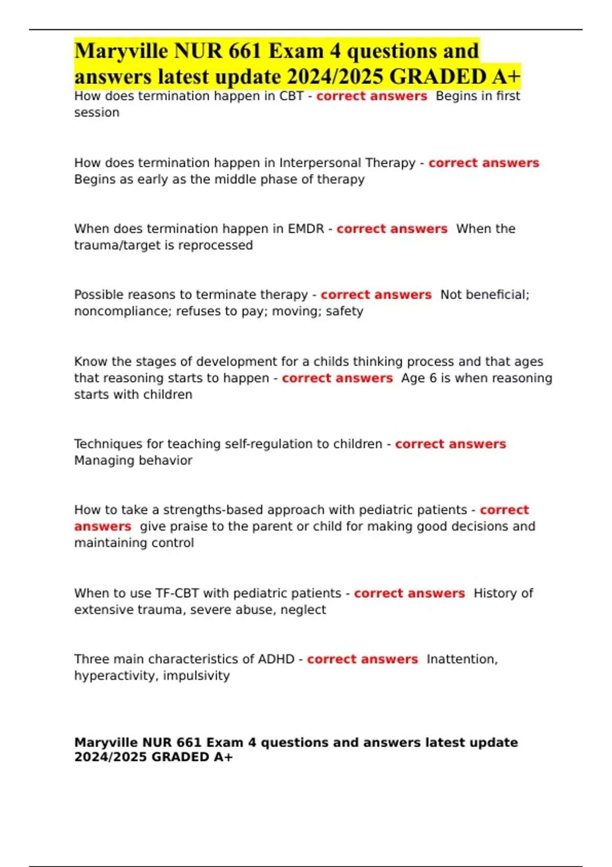 Maryville NUR 661 Exam 4 questions and answers latest update 2024/2025 GRADED A+