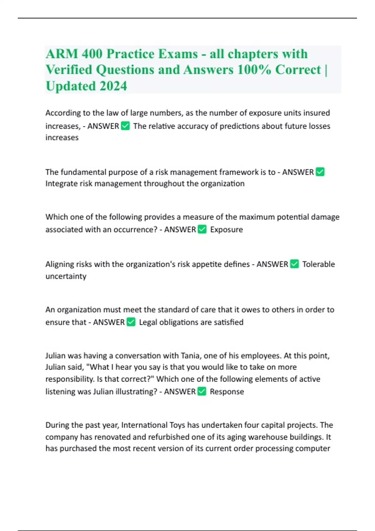 ARM 400 Practice Exams - all chapters with Verified Questions and Answers 100% Correct | Updated 2024