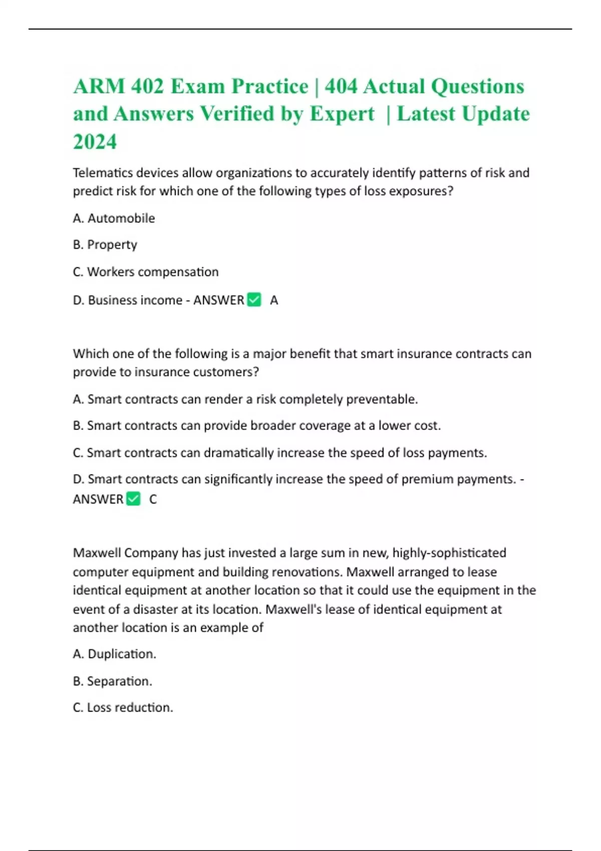ARM 402 Exam Practice | 404 Actual Questions and Answers Verified by Expert | Latest Update 2024