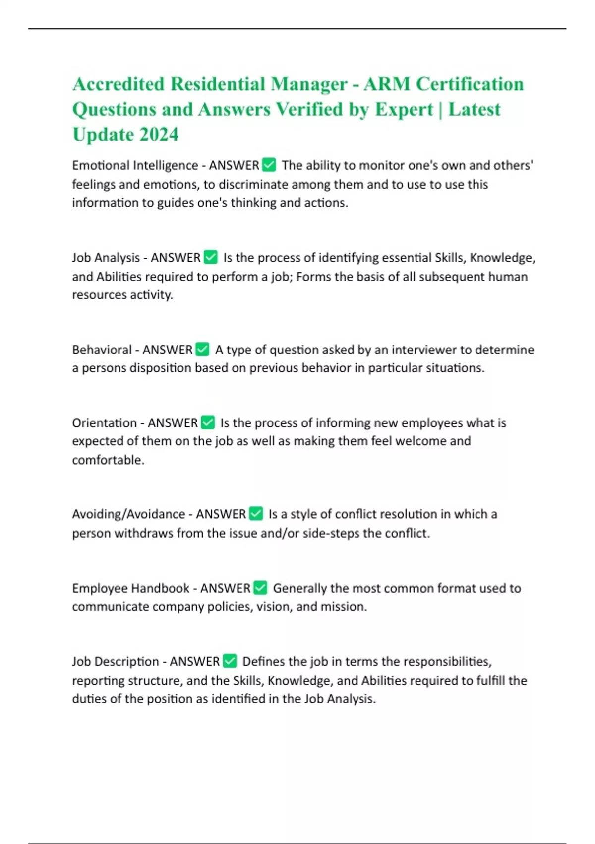 Accredited Residential Manager - ARM Certification Questions and Answers Verified by Expert | Latest Update 2024