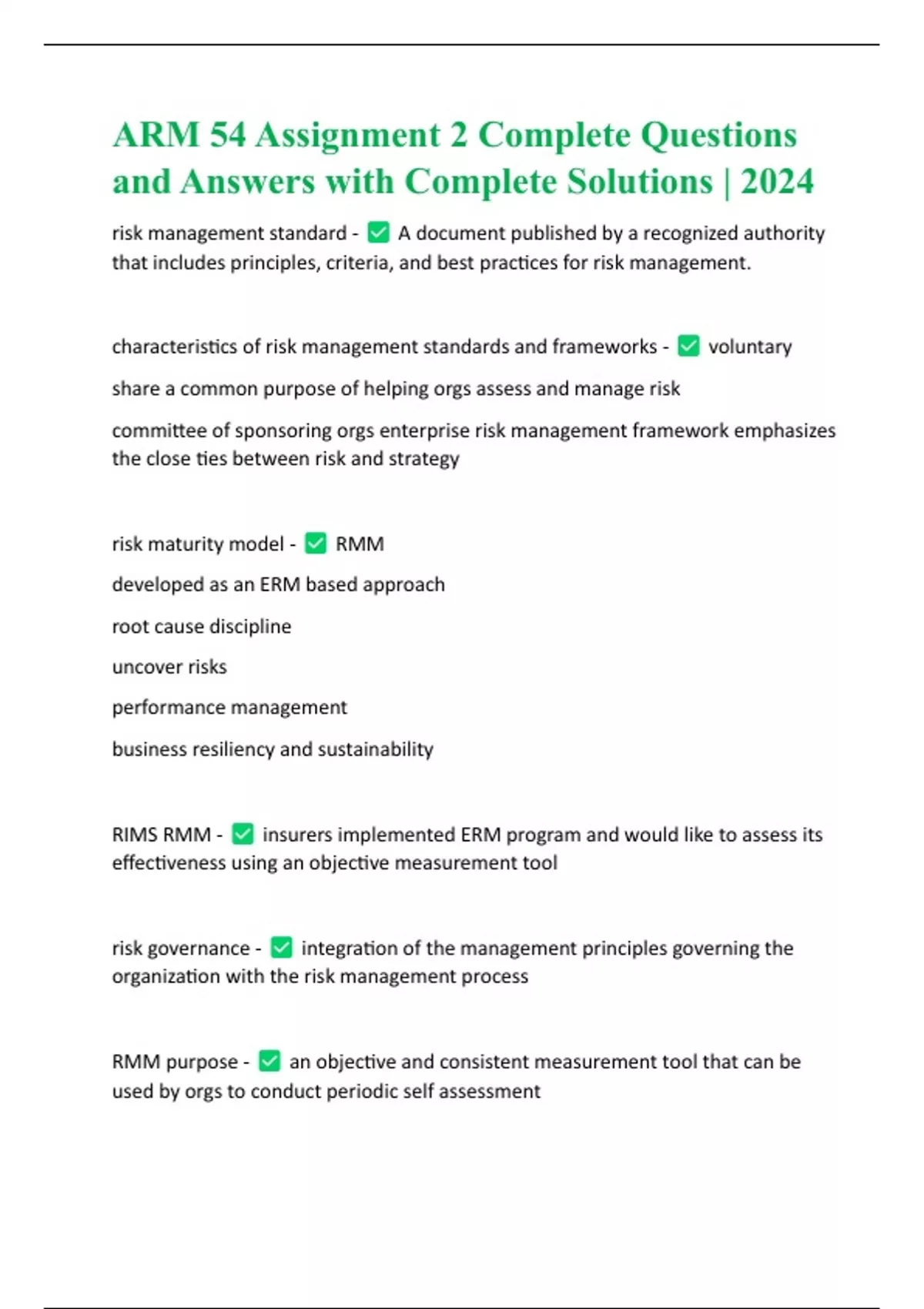 ARM 54 Assignment 2 Complete Questions and Answers with Complete Solutions | 2024