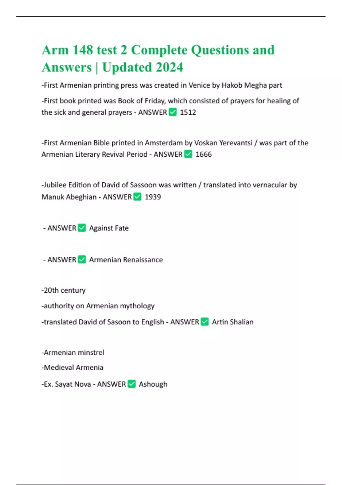 Arm 148 test 2 Complete Questions and Answers | Updated 2024
