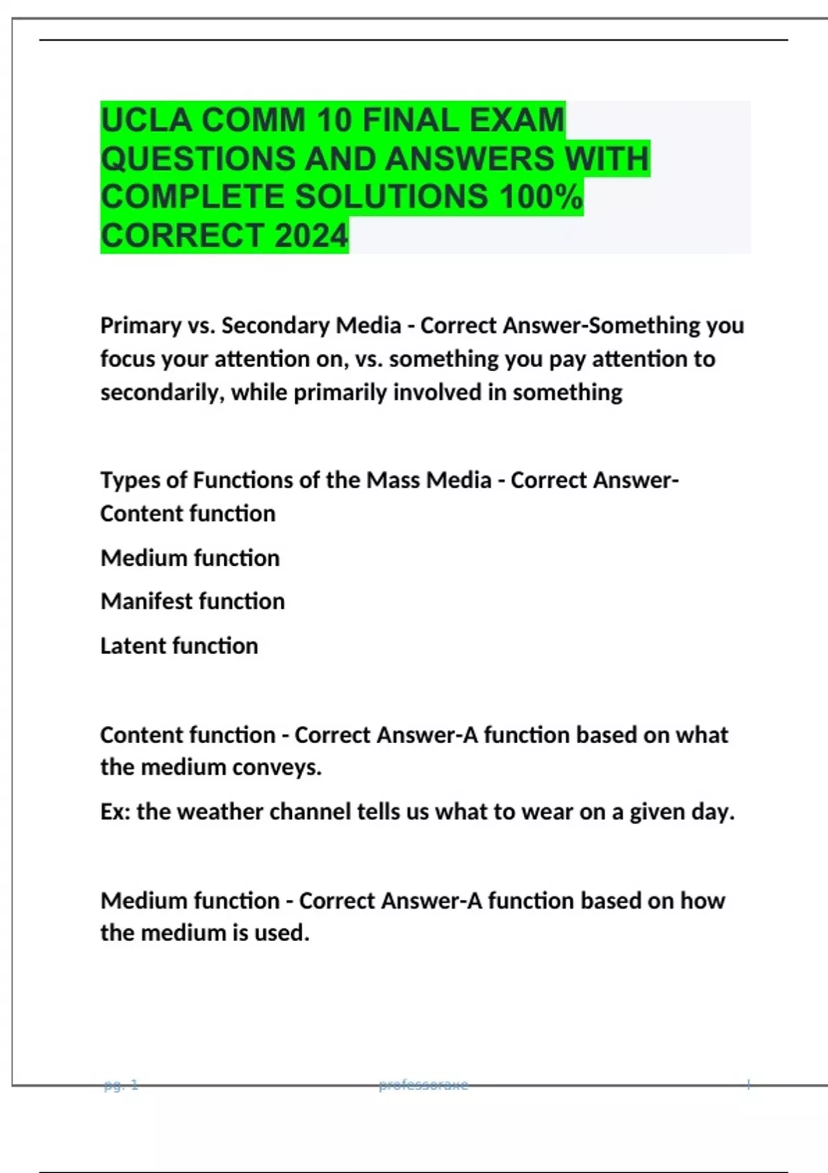 UCLA COMM 10 FINAL EXAM QUESTIONS AND ANSWERS WITH COMPLETE SOLUTIONS 100% CORRECT 2024