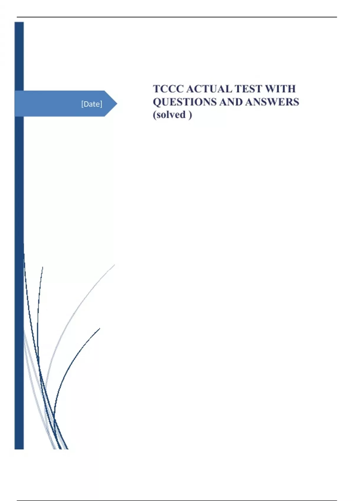 TCCC ACTUAL TEST WITH QUESTIONS AND ANSWERS (solved )