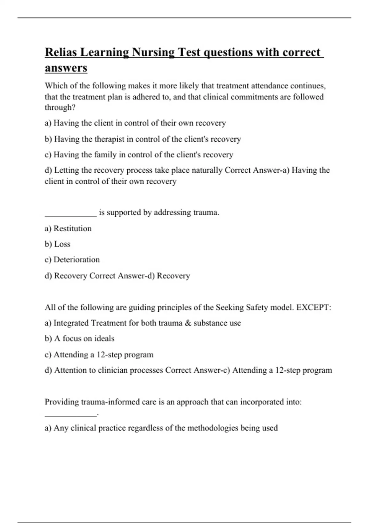 Relias Learning Nursing Test questions with correct answers