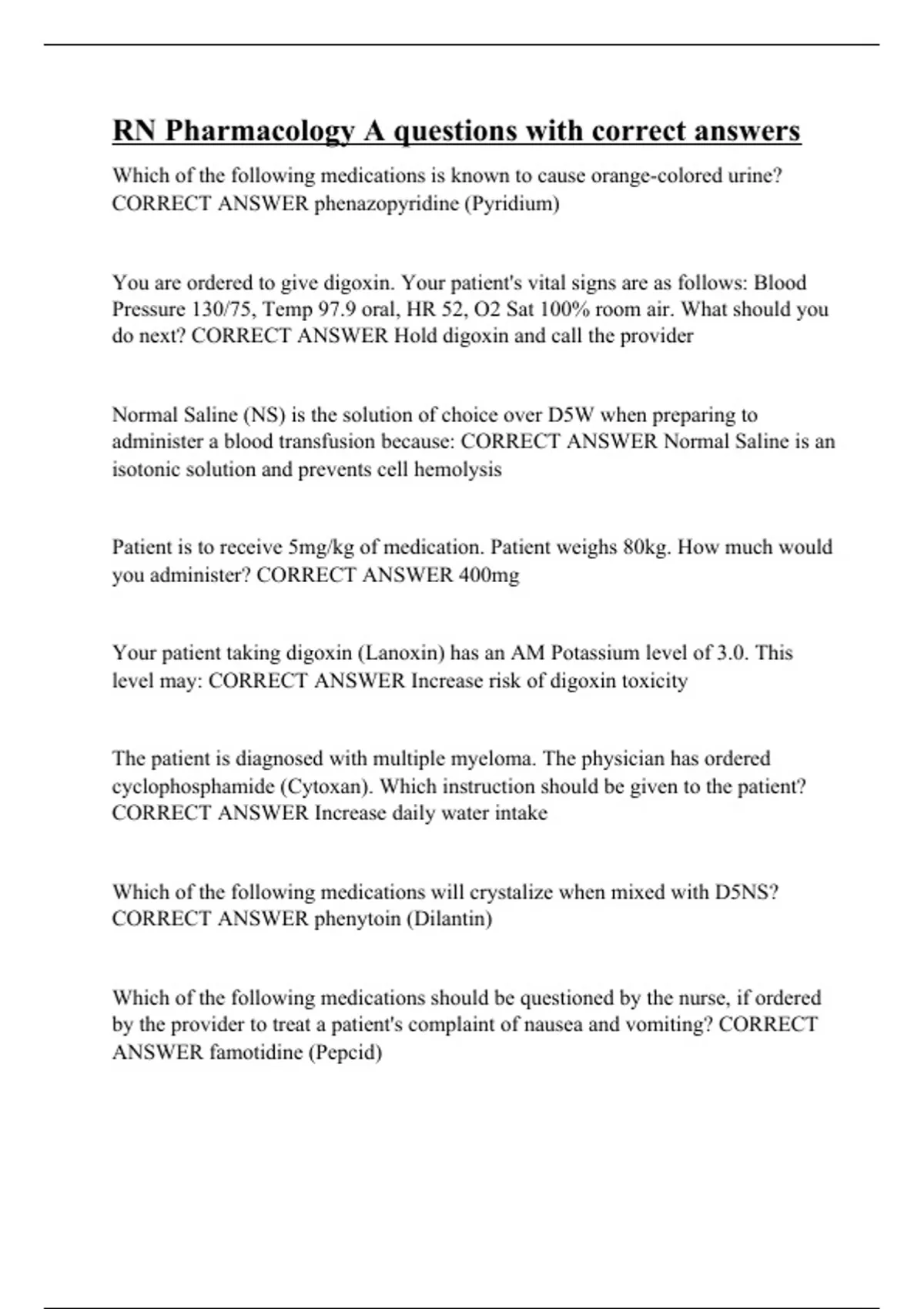RN Pharmacology A questions with correct answers